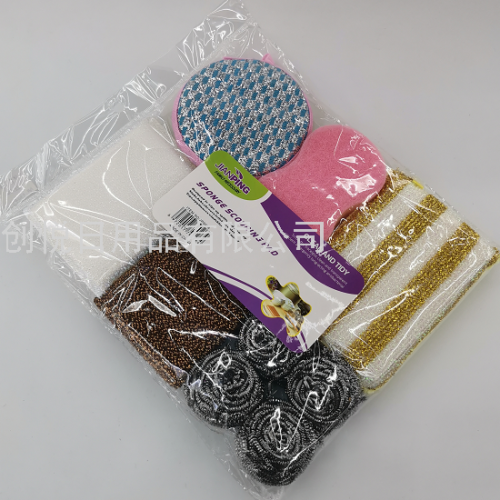 Cleaner Sponge Brush + 1 Piece Round Sponge Brush + 1 Piece 8-Character Sponge Scrub + 1 Piece Double-Sided Color-Striped Sponge