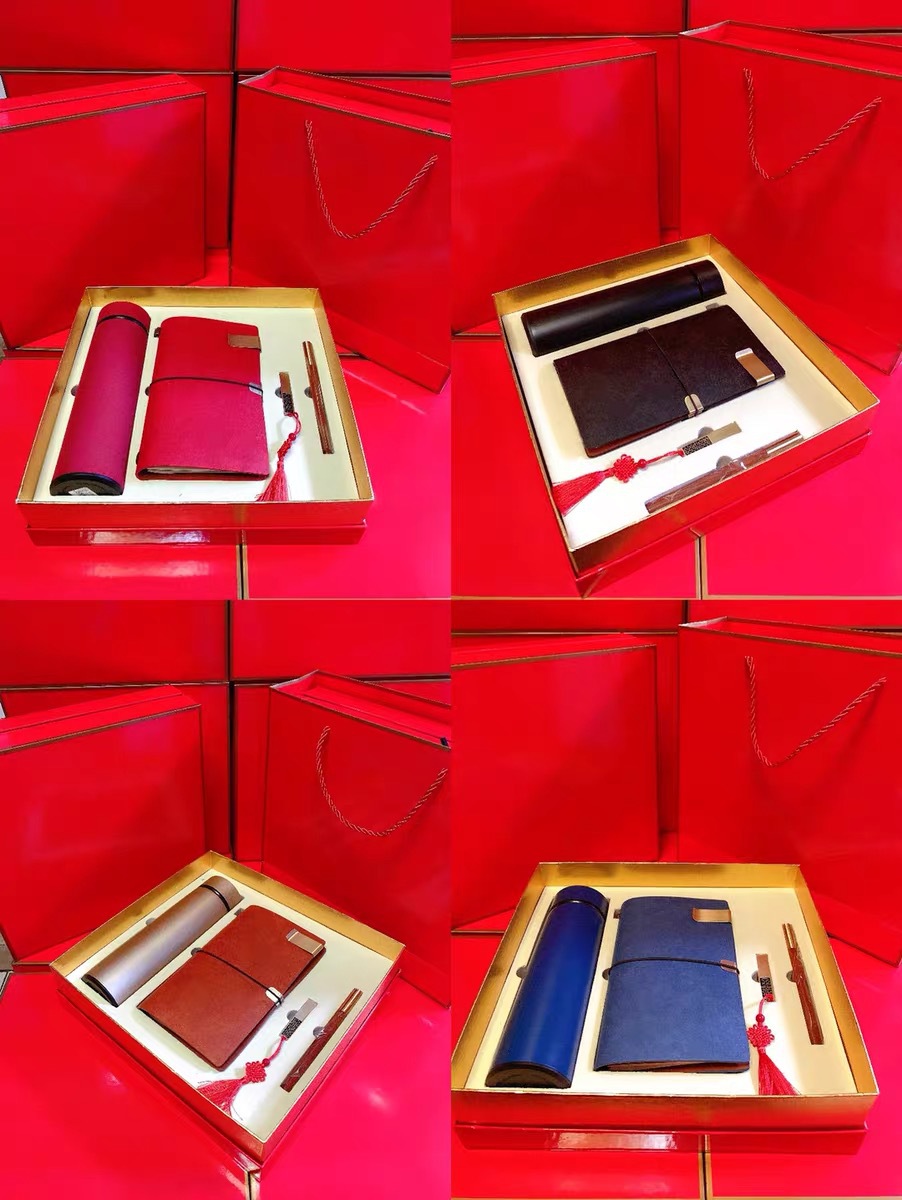 red: journal book + copper wooden pen + u disk 16g + thermos cup