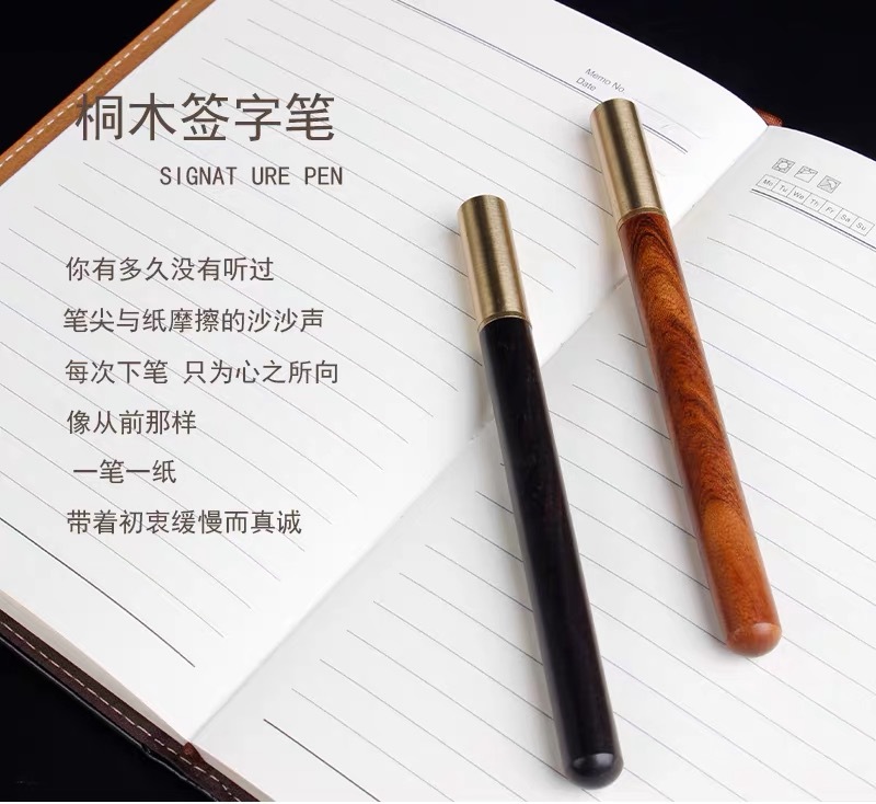 four-piece set: journal book + copper wooden pen + thermos cup