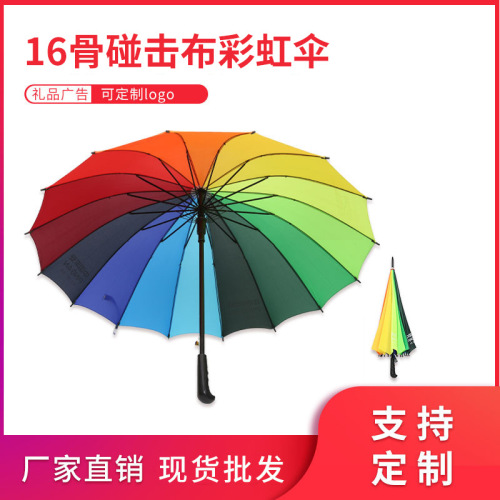 Umbrella Umbrella Oversized Double 68cm16 Pieces Rainbow Umbrella Straight Umbrella Printed Logo Spot Umbrella 中文版