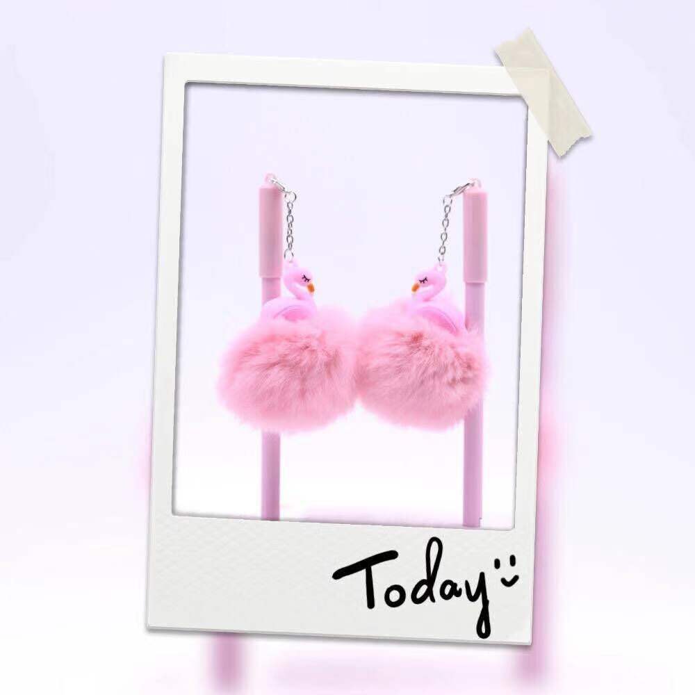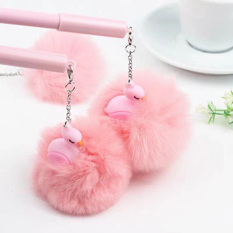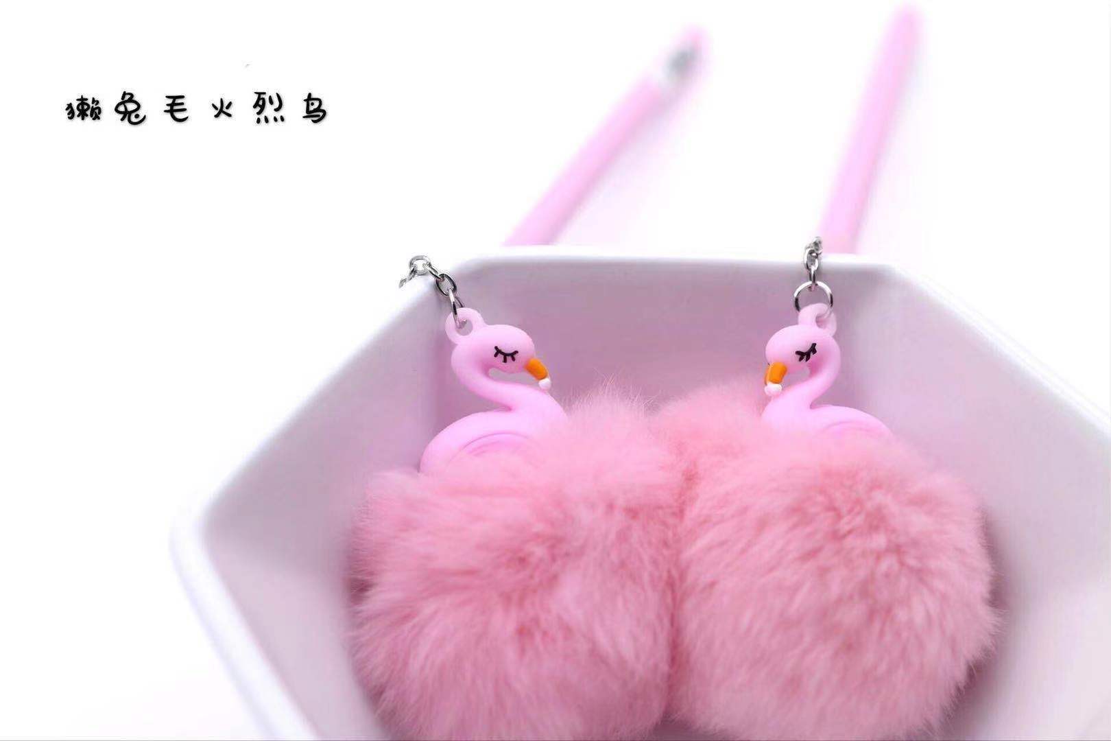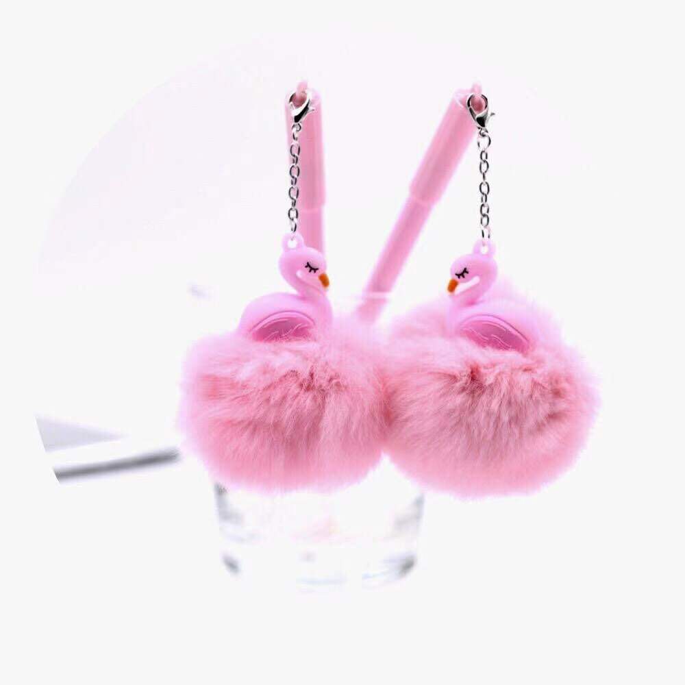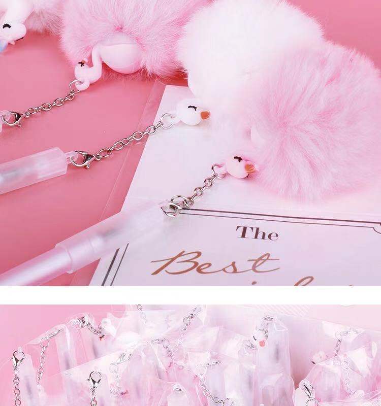 korean cute cartoon flamingo fur ball gel pen girl heart creative plush shell students' supplies wholesale 中文版