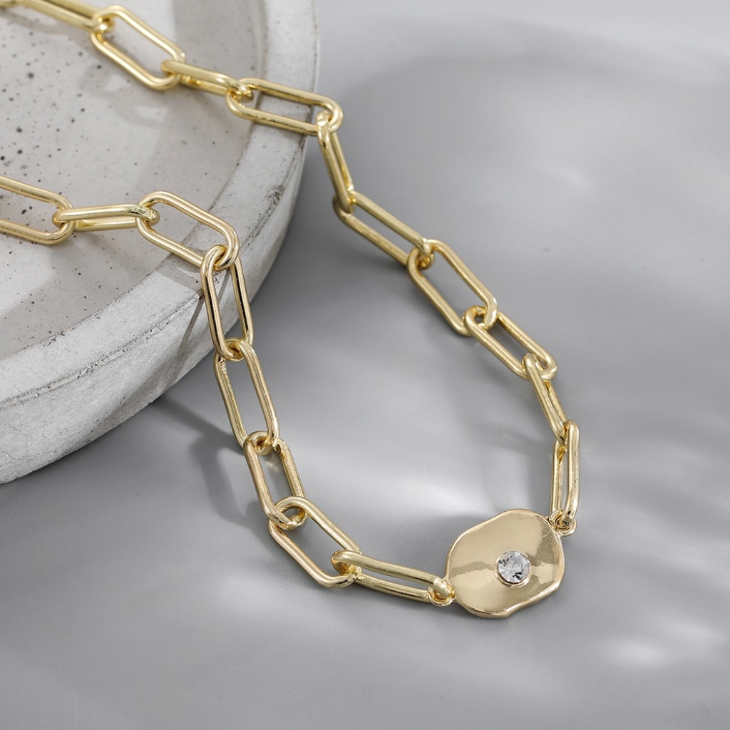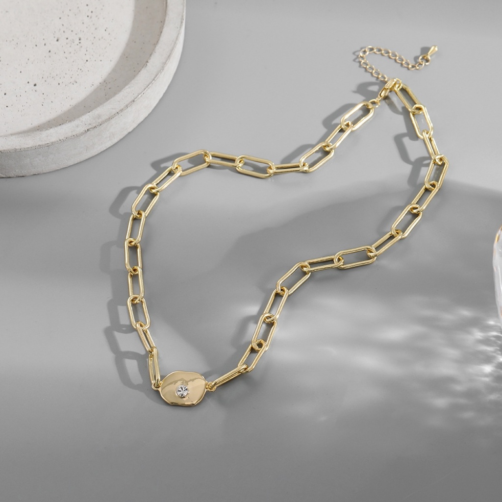 n8153 europe and america cross border ornament fashionable diamond-embedded niche design cold style necklace chain hip hop clavicle chain 中文版