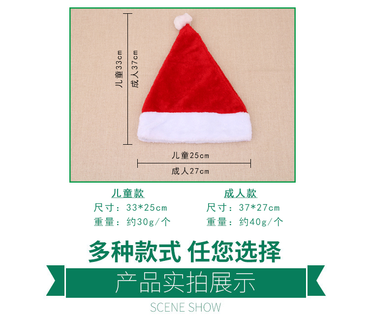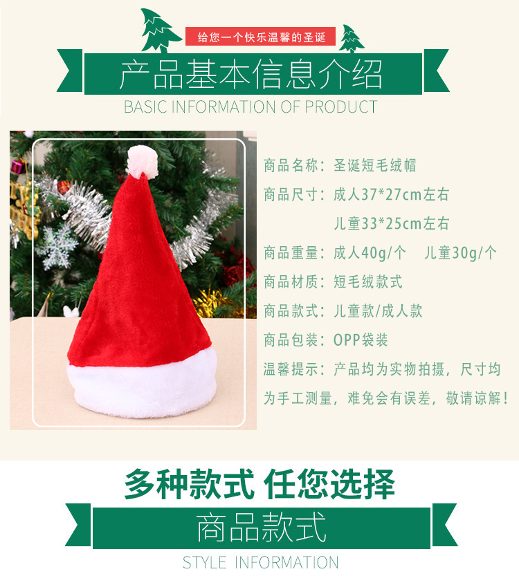 christmas hat high-end christmas short plush hat christmas supplies adult christmas hat party 中文版
