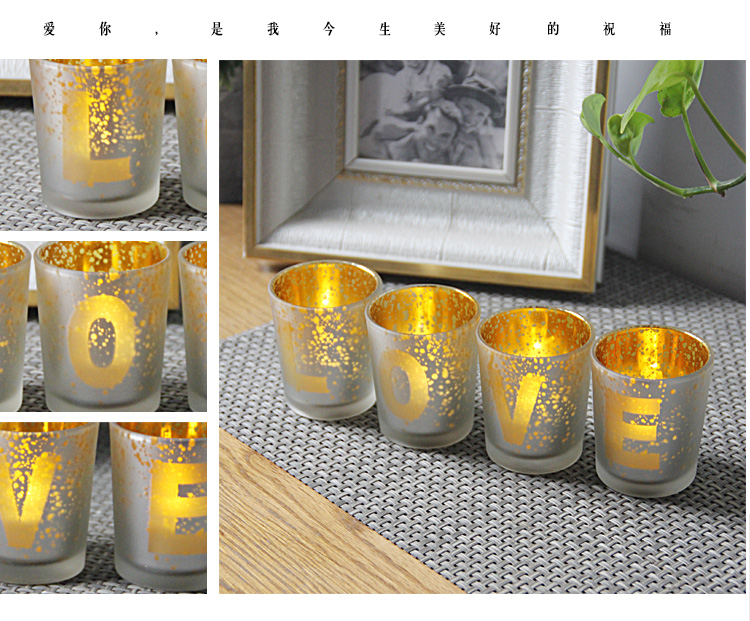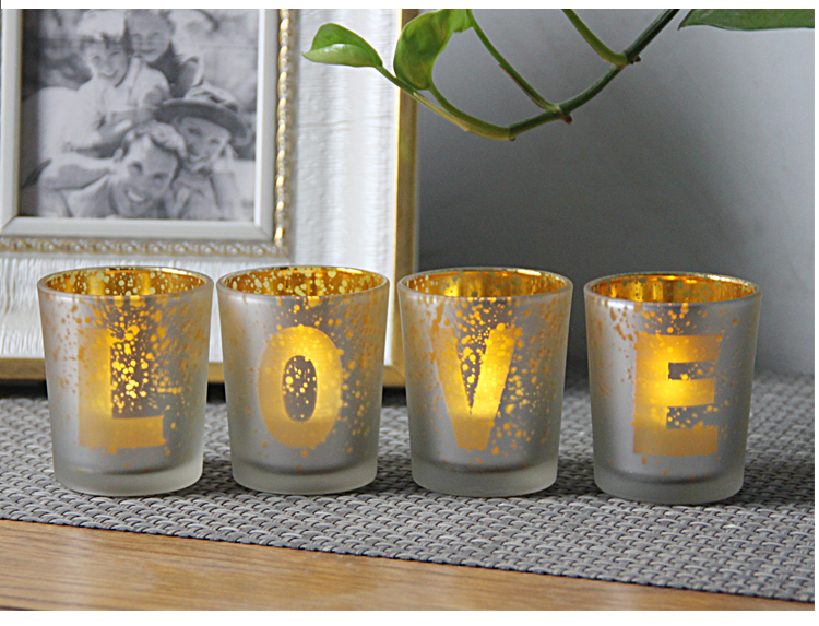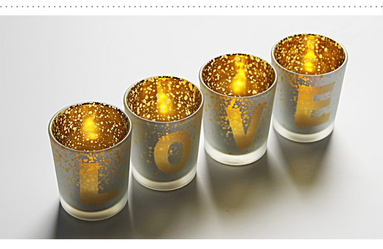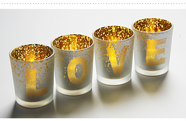 【Electroplated LOVE Four-piece Glass Candle Holder Set】