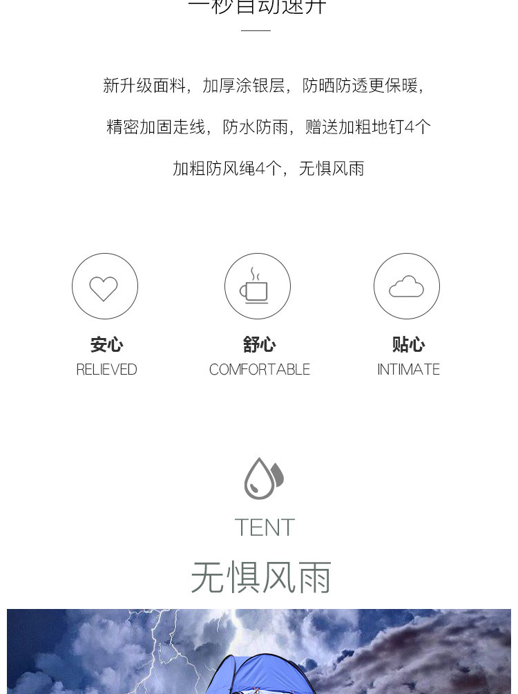 Product accessories: storage bag * 1, ground anchors * 4, windbreak ropes * 4