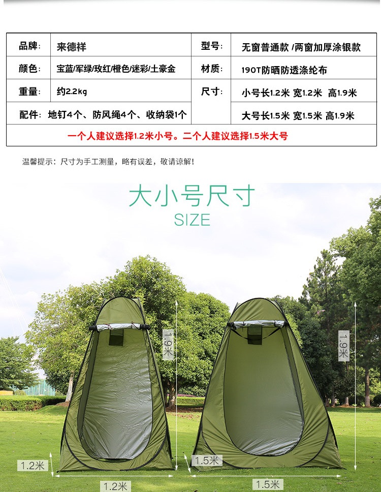 Product features: Multi-purpose for outdoor camping, changing, bathroom, shower, fishing.