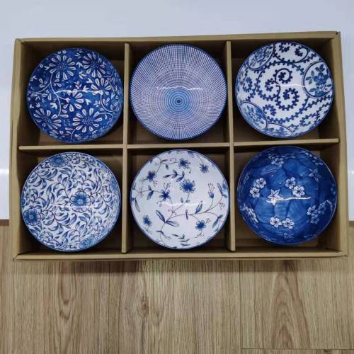 Product Name:5.25 inch sleeve six hand painted blue and white threaded Bowl