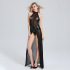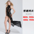 sexy lingerie dress european and american foreign trade lace sexy halter jumpsuit transparent black veil open dress 中文版