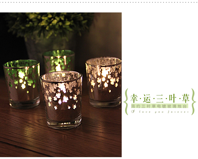【Minimalist Electroplated Clover Romantic Candlelight Dinner Decorative Glass Candlestick】