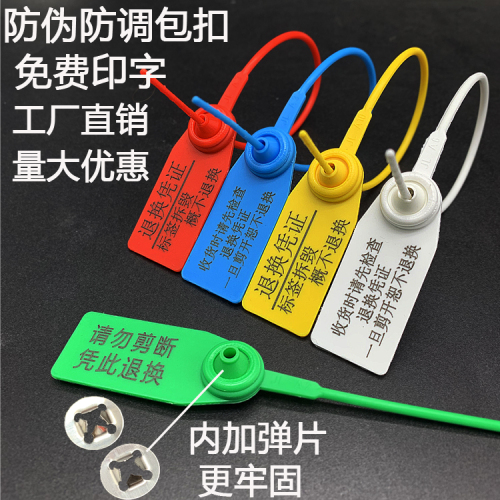 4.塑料铅封也常被称为封签,这是不仅是由于它的一次性使用原理,还因为塑料铅封上面有一张较大的铭牌,上面能够标记较多的信息。