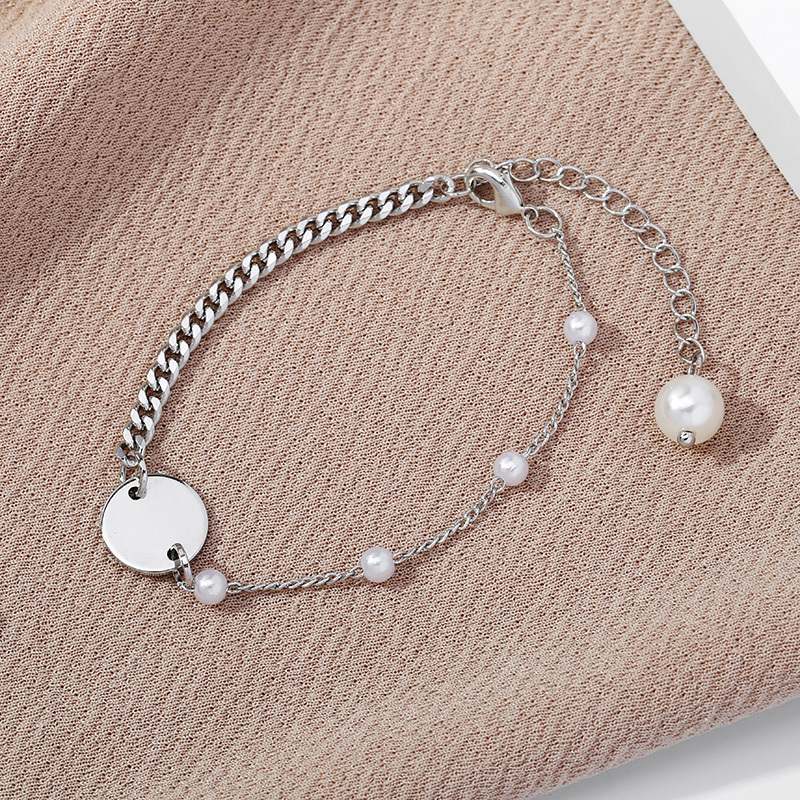 Fashion Simple Alloy Pearl Bracelet Alloy round Brand Gold-Plated Bracelet Water Ripple Creative Pearl Bracelet 中文版