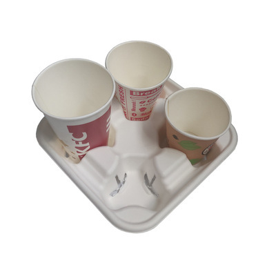 4-compartment Cup Saucer Sugar Cane Paper Pulp Sauce Degradable Take out Take Away Outdoor Coffee Milk Tea Cup Saucer 中文版