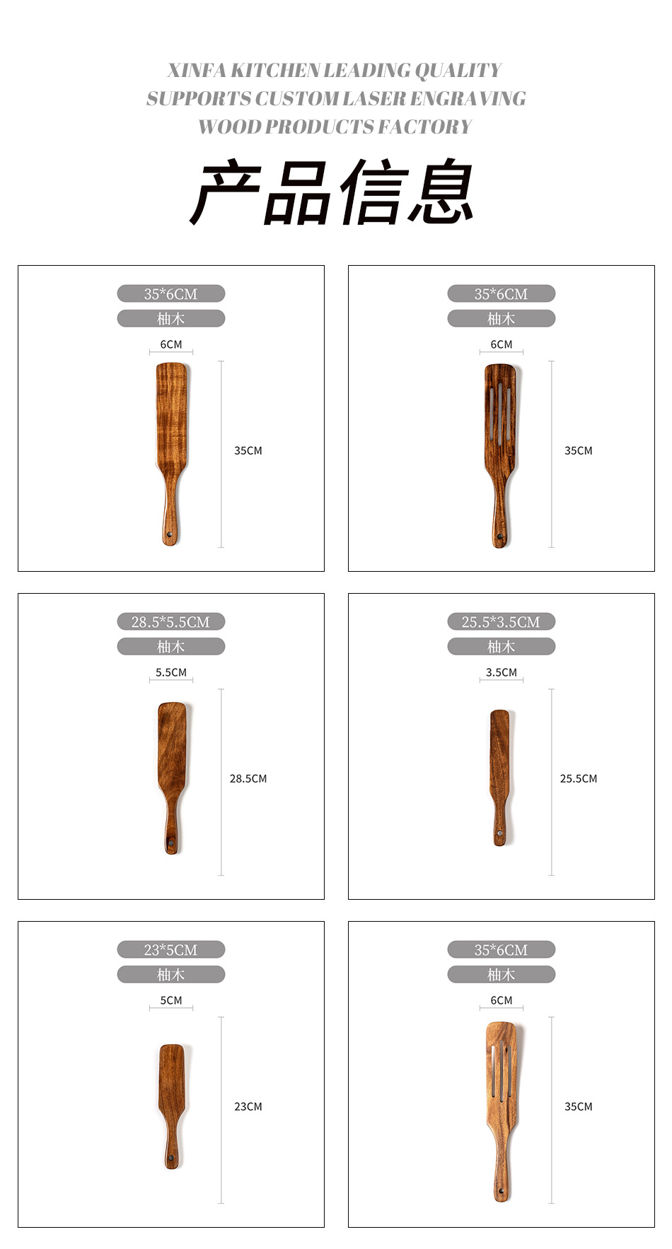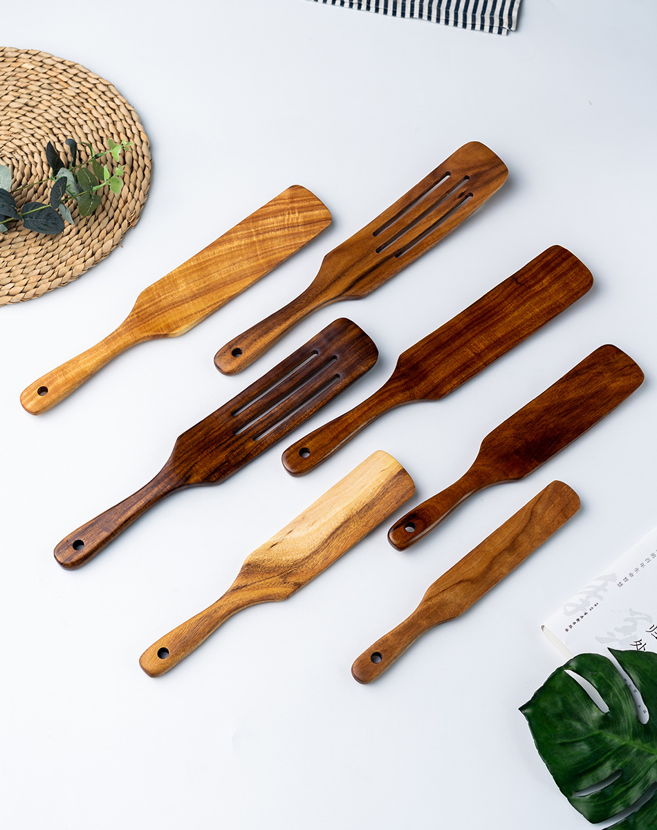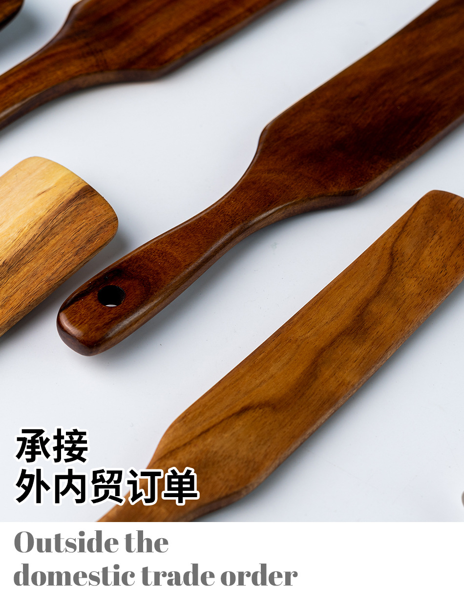 cross-border new arrival european style acacia mangium 5-piece set teak scraper flat shovel three-line shovel wooden spatula customized wholesale 中文版