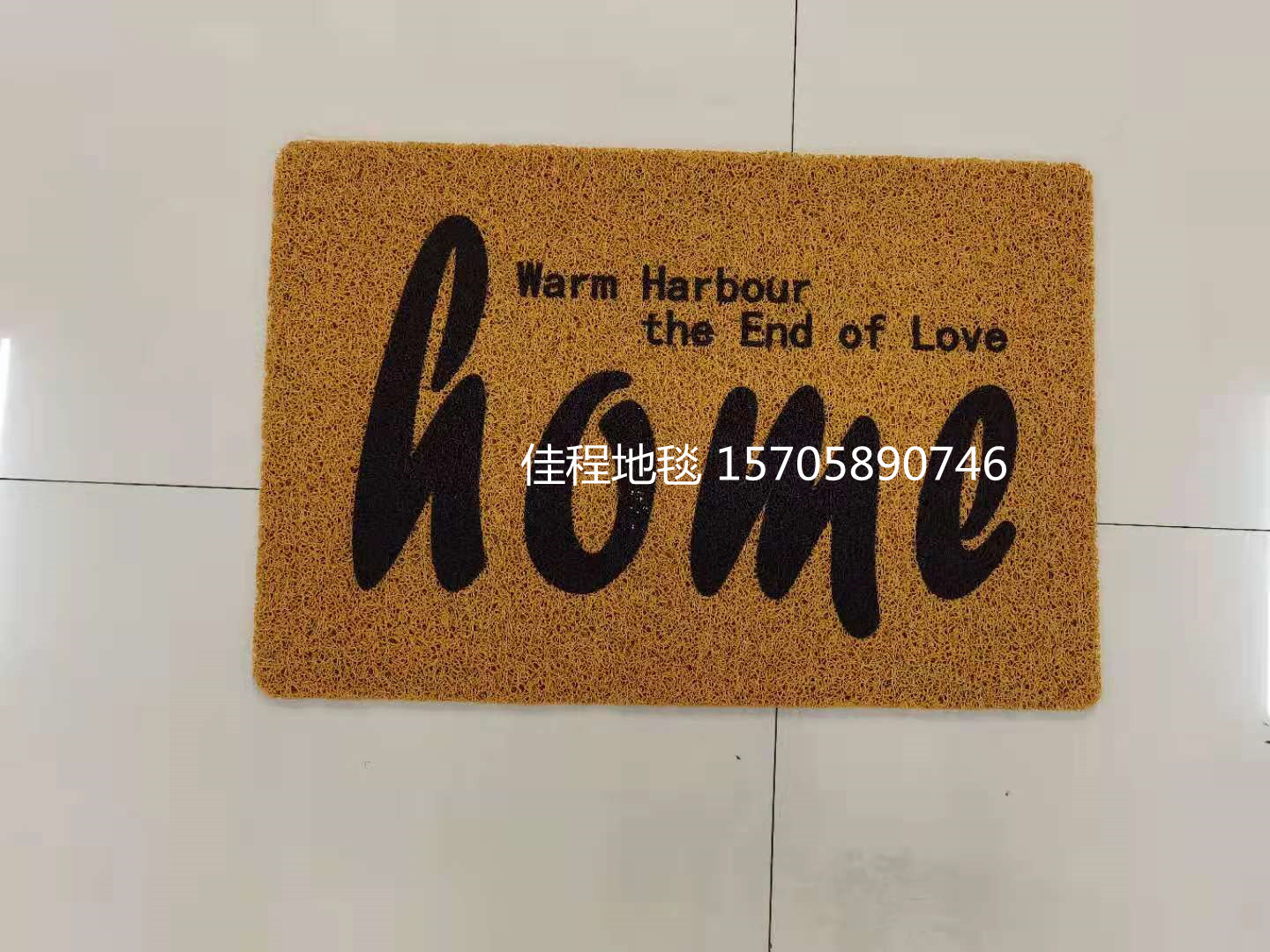 New PVC inkjet carpet with textured surface for better traction, anti-slip door mats, and foot mats. Available in brown, the WELCOME carpet is part of the HOME series. Multiple patterns are available, with a size of 40*60cm. Each package contains 60 pieces, and they are packaged in a woven bag. The carpet is provided by Jia Cheng Carpet. Contact 15705890746 for more information.