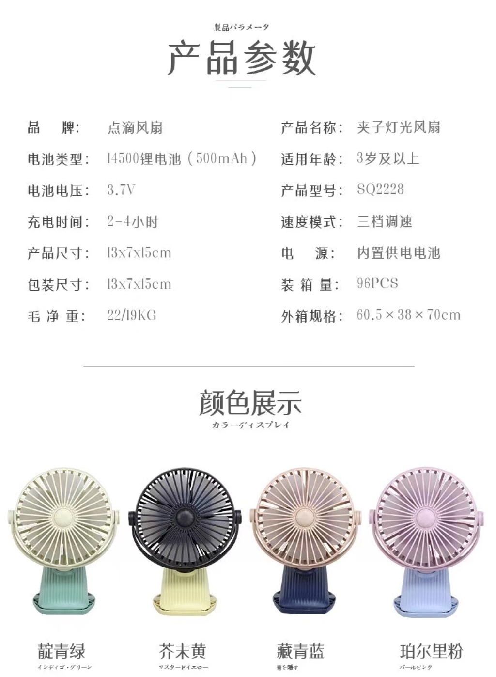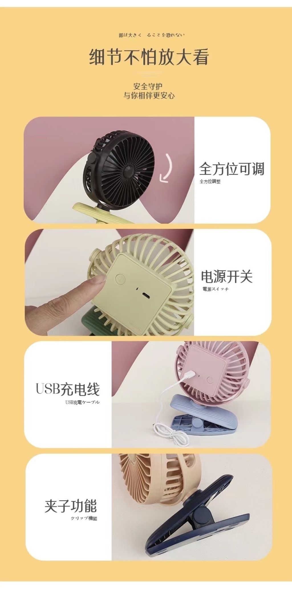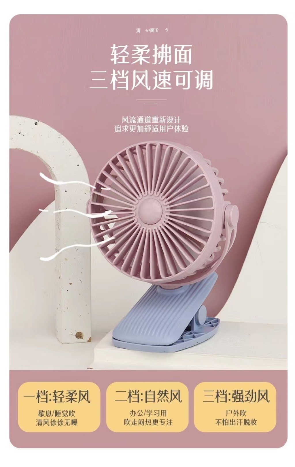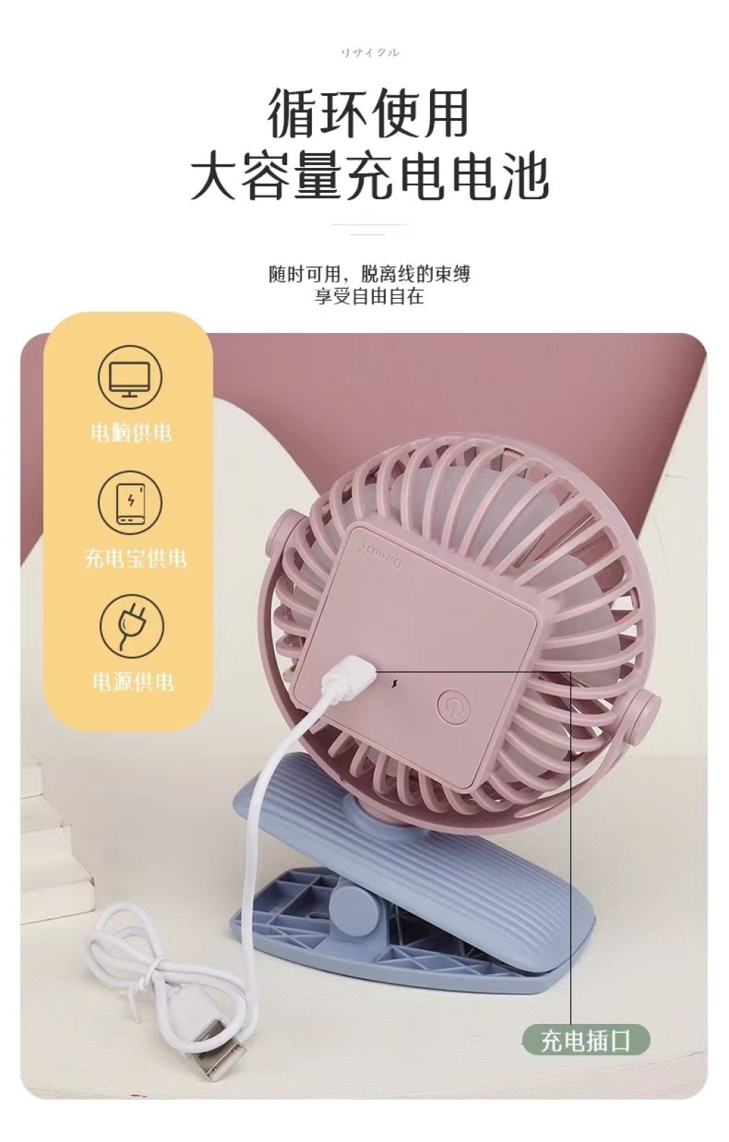 light clip three-gear rechargeable fan 中文版