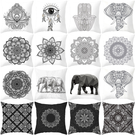 Gm006 Black and White Ethnic Style Mandala Elephant Printed Car Throw Pillowcase Sofa Pillow Cases Sub-Household Supplies
