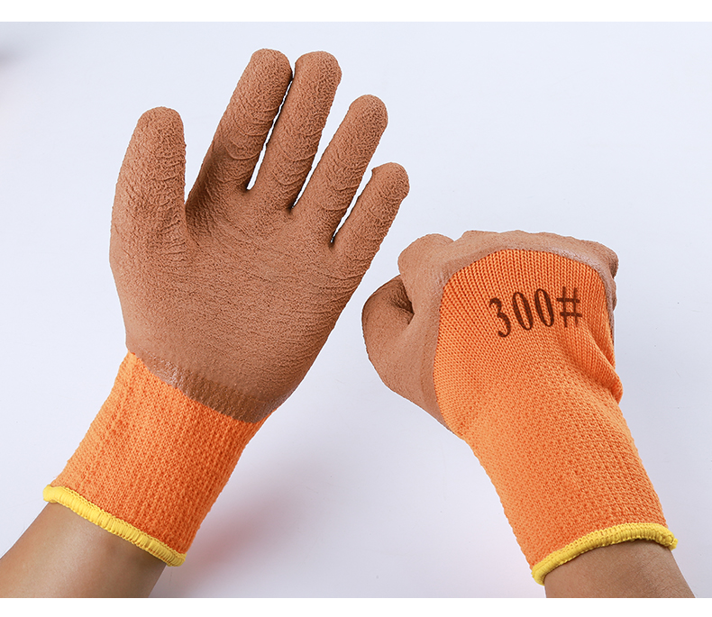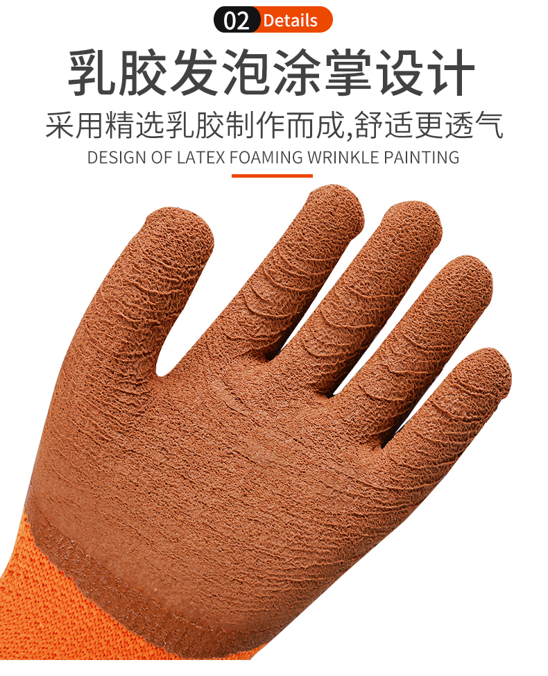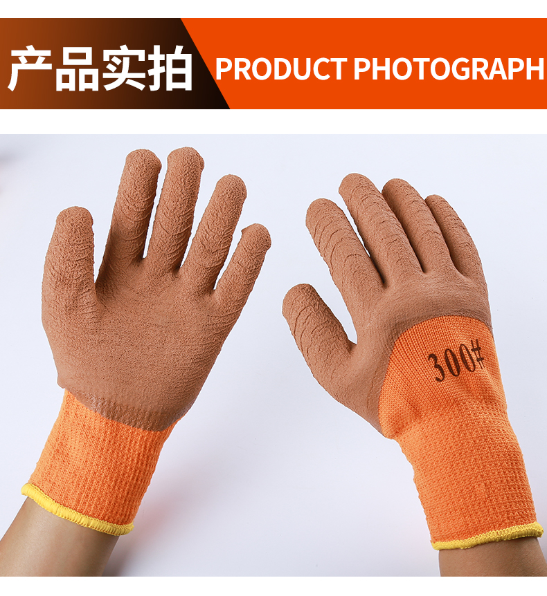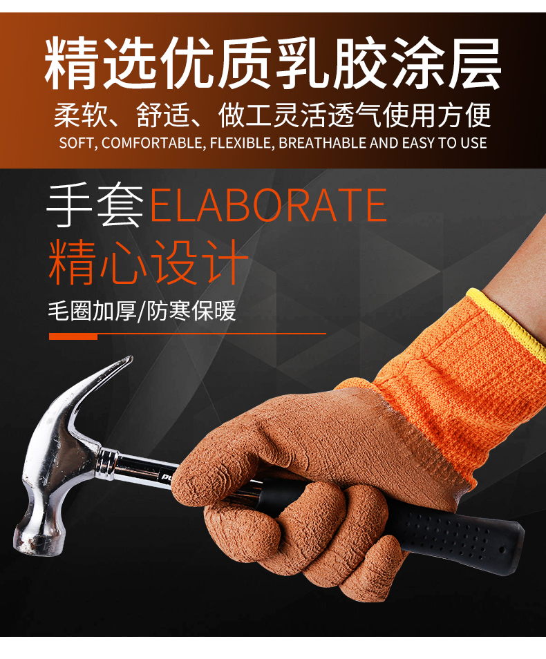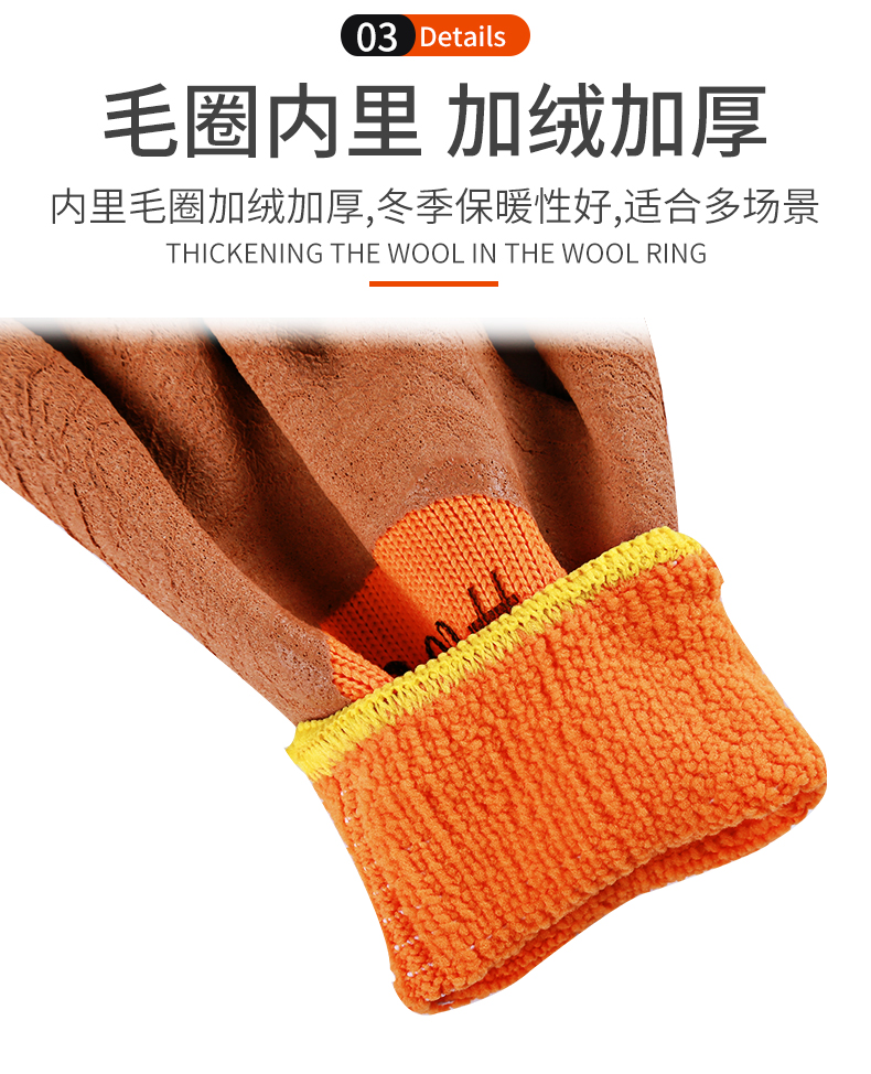 winter fleece-lined thickened warm labor protection gloves terry wrinkle non-slip wear-resistant dipping protective gloves 中文版