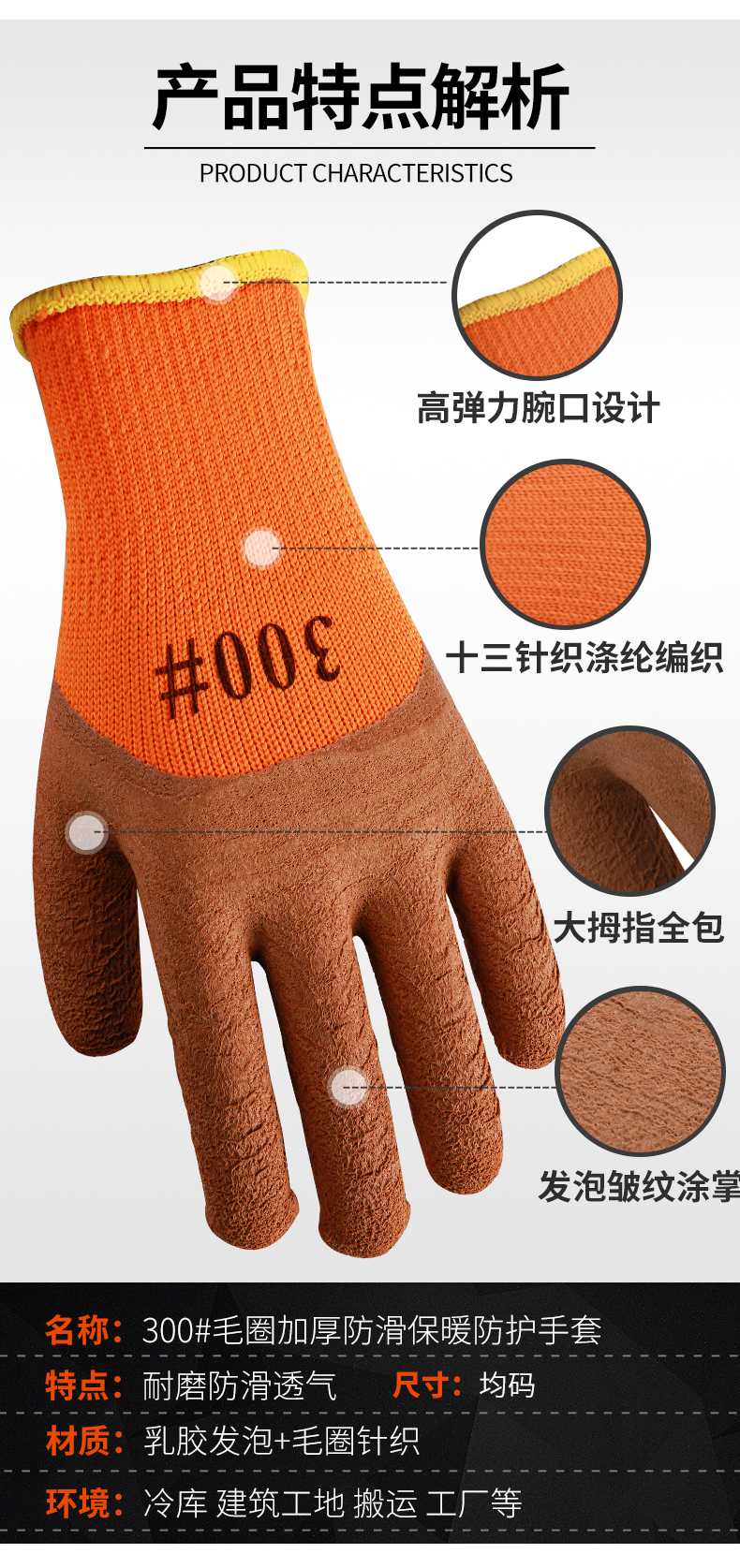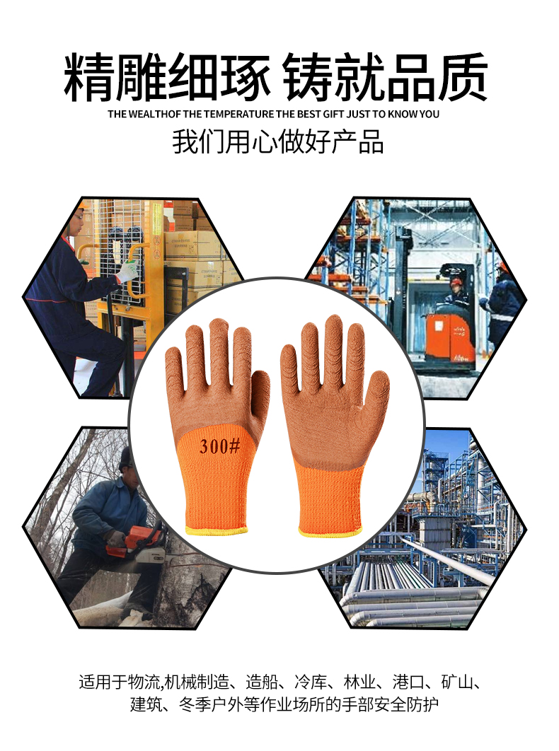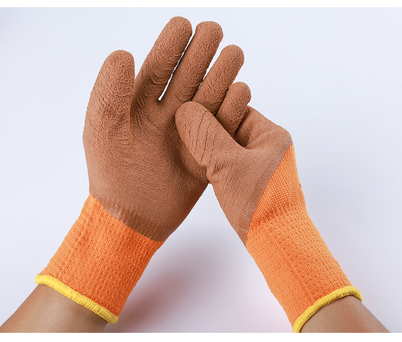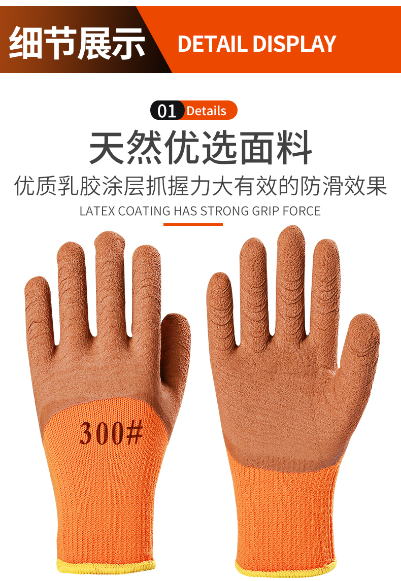 winter fleece-lined thickened warm labor protection gloves terry wrinkle non-slip wear-resistant dipping protective gloves 中文版