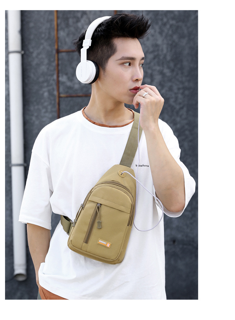 sports chest bag men's multi-functional new crossbody bag shoulder bag with earphone hole travel small backpack 中文版