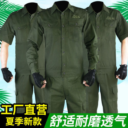Summer Short-Sleeved Overalls Suit Men's Labor Protection Clothing Women's Thin Breathable Workwear Fatigue Clothes Welder's Workwear Shirt Wholesale 中文版