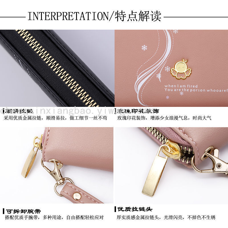 fashion women's wallet single pull bag wallet ladies long and simple fashion zipper bag handphone-friendly 中文版