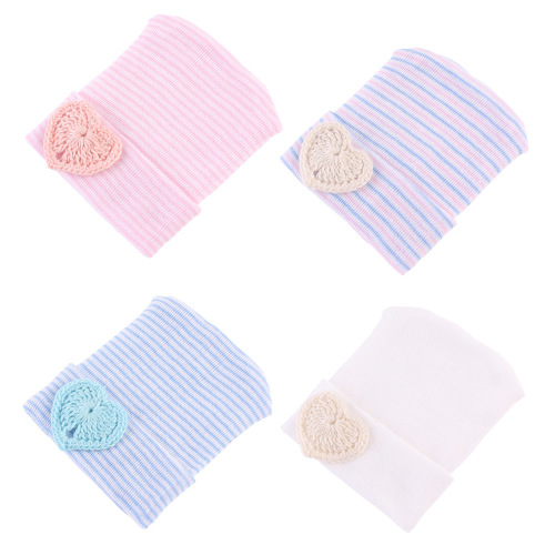european and american newborn fetal hat cotton striped baby knitted love shape dome hat children's hat