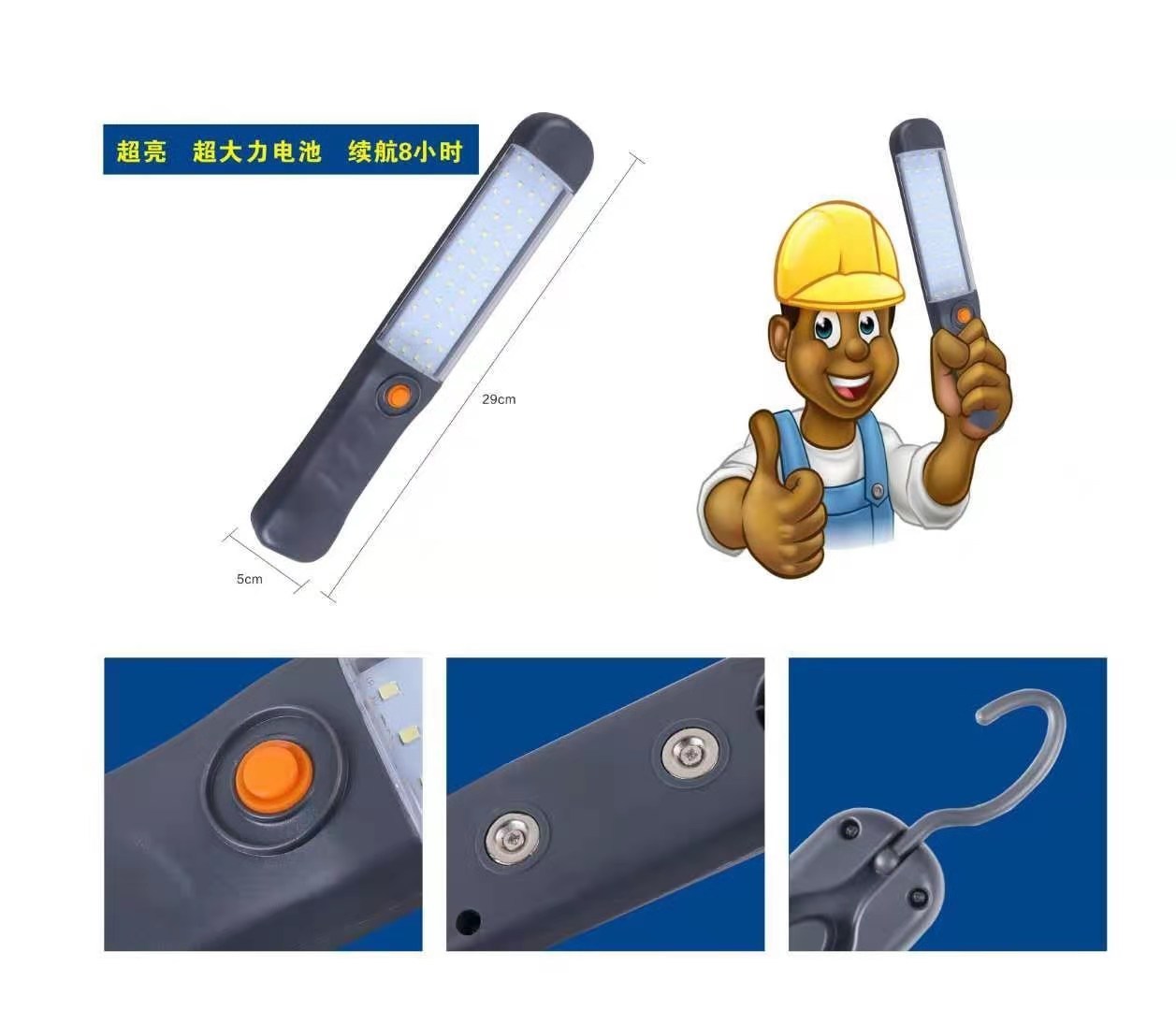led light portable work rechargeable light magnetic suction light maintenance work light field searchlight 中文版