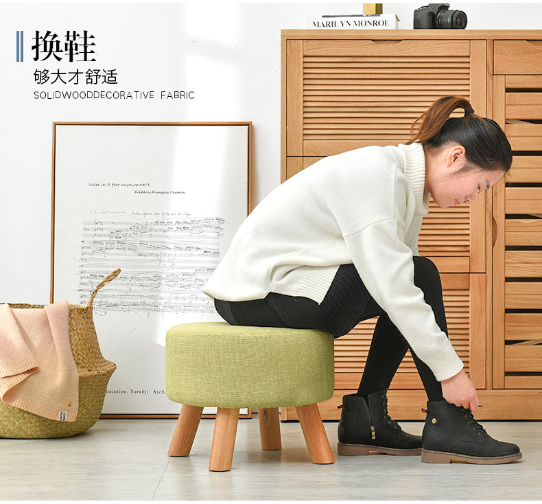 creative shoe changing stool round stool solid wood sofa soft stool small stool fabric low stool footstool small bench 中文版
