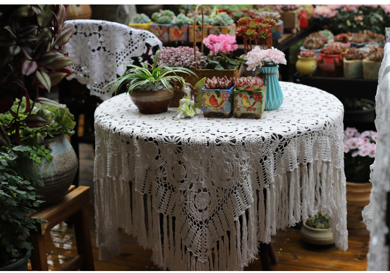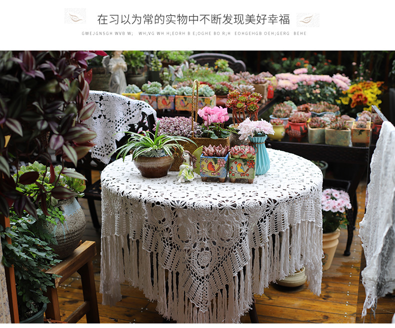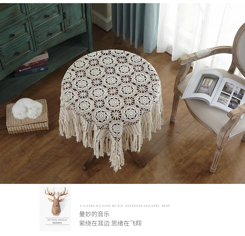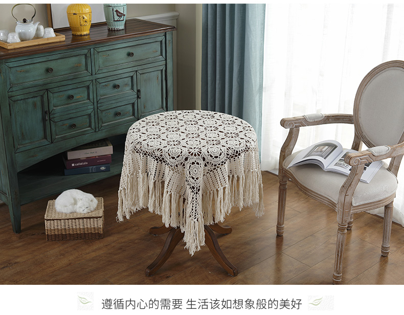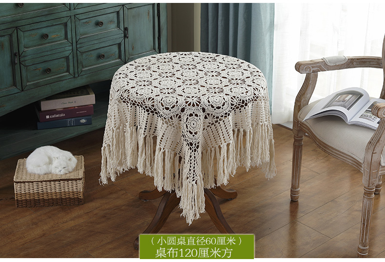 round hand crochet crocheted tablecloth fabric hollow home living room coffee table cloth dust cover cloth