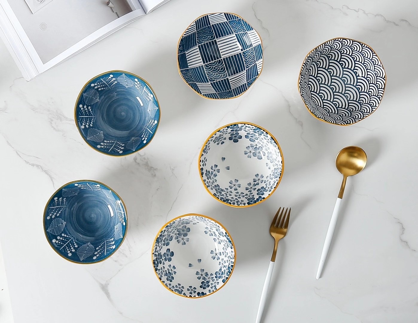 日系和风手绘5寸八角碗4碗彩盒陶瓷套装