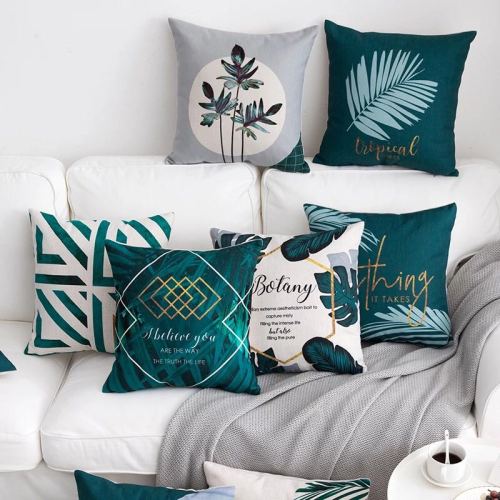 Green Background Geometric Cotton and Linen Pillow Leaf Nordic Instagram Style Abstract Plant Pillow Living Room Sofa Cushion Hug 中文版