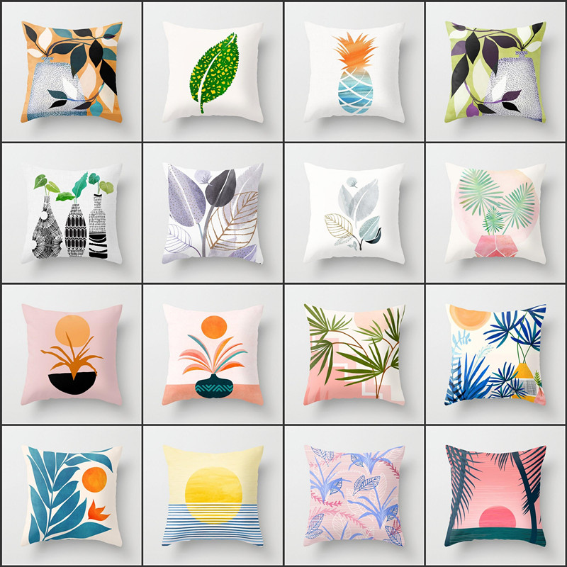 New Pillow Removable and Washable Fashion Flower and Leaf Pattern Short Plush Square Cushion Sofa Cushion Cover Waist Pillow 中文版