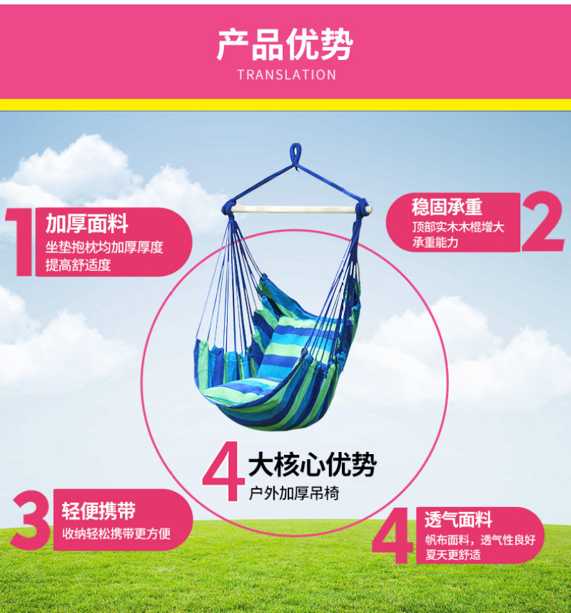 Outdoor Camping Cradle Glider Rainbow Striped Canvas Swing Hammock Dormitory Leisure Swing Glider Wholesale 中文版