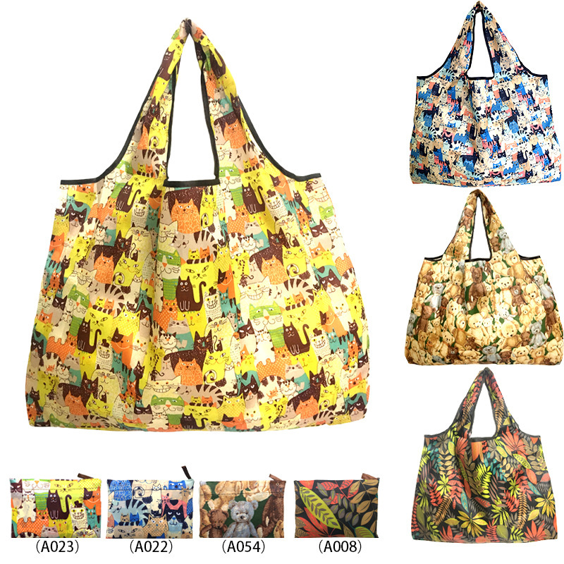 Factory Direct sales cartoon folding environmentally friendly shopping bag portable portable pouch oversized supermarket shopping bag support customization and printing various LG