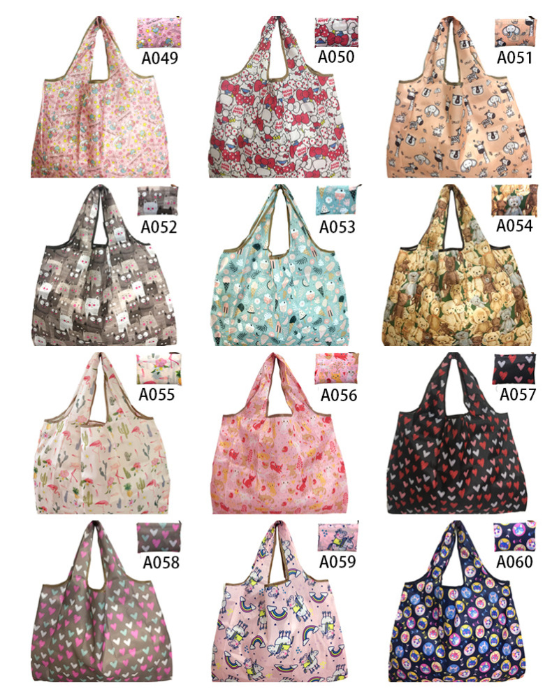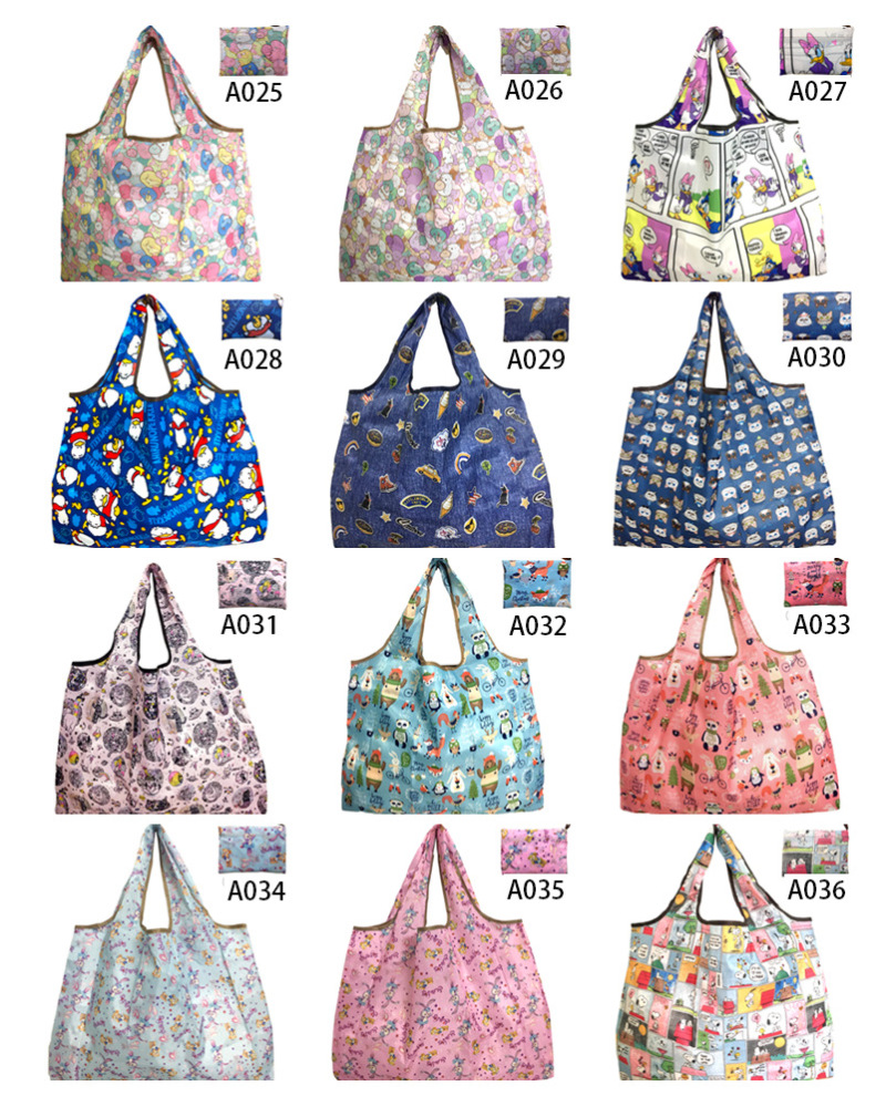 About Product:Factory Direct sales cartoon folding environmentally friendly shopping bag portable portable pouch oversized supermarket shopping bag. Support customization and printing of various LG
