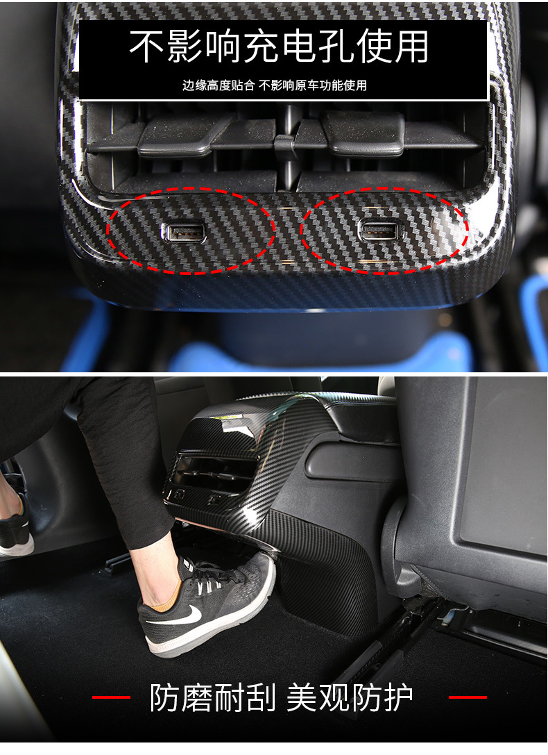 rear armrest box mat carbon fiber kickplate