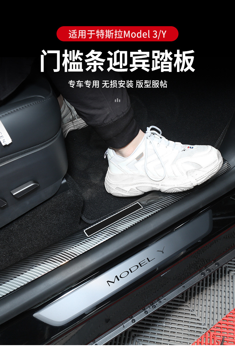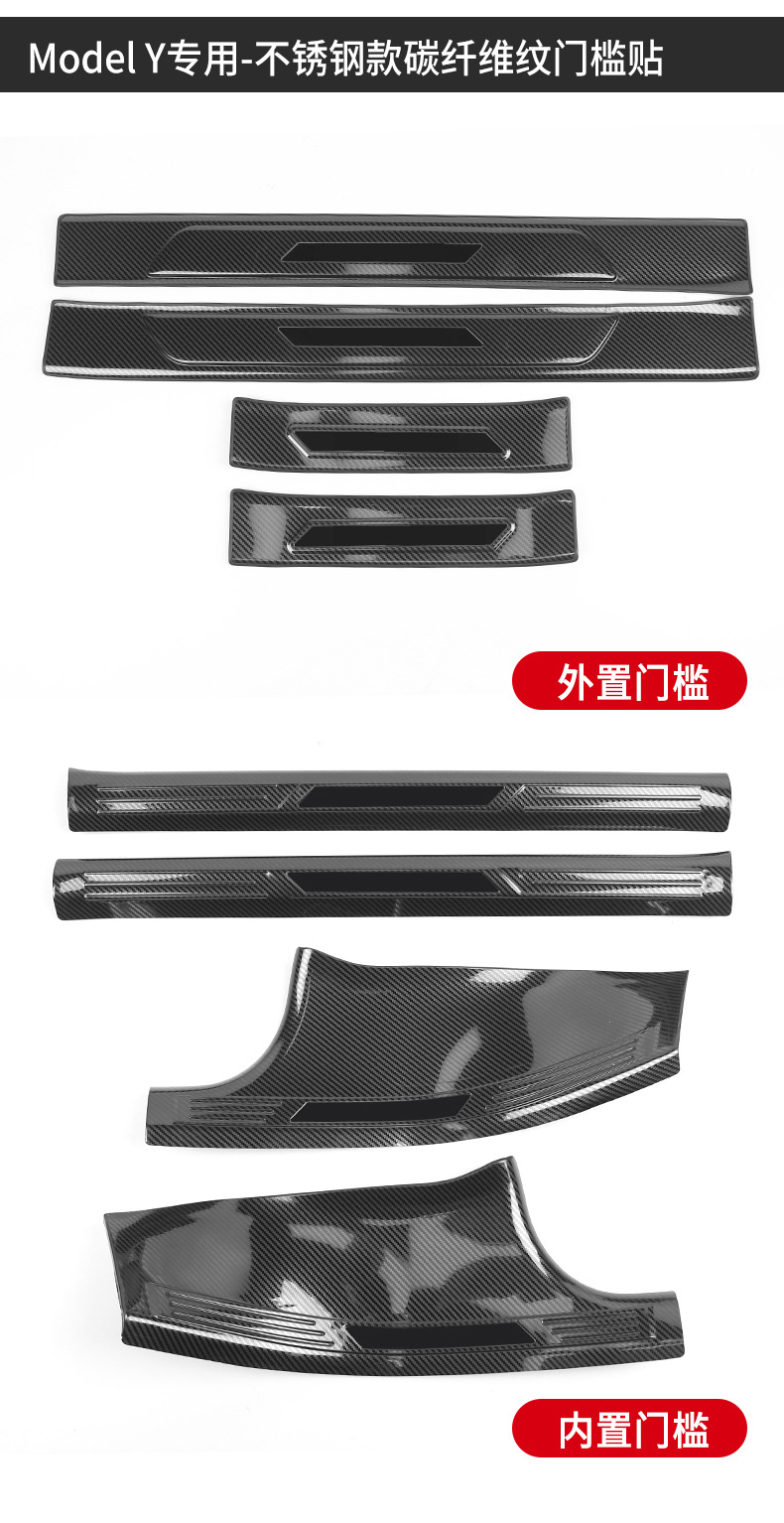 model y-stainless steel carbon fiber grain built-in sill strip