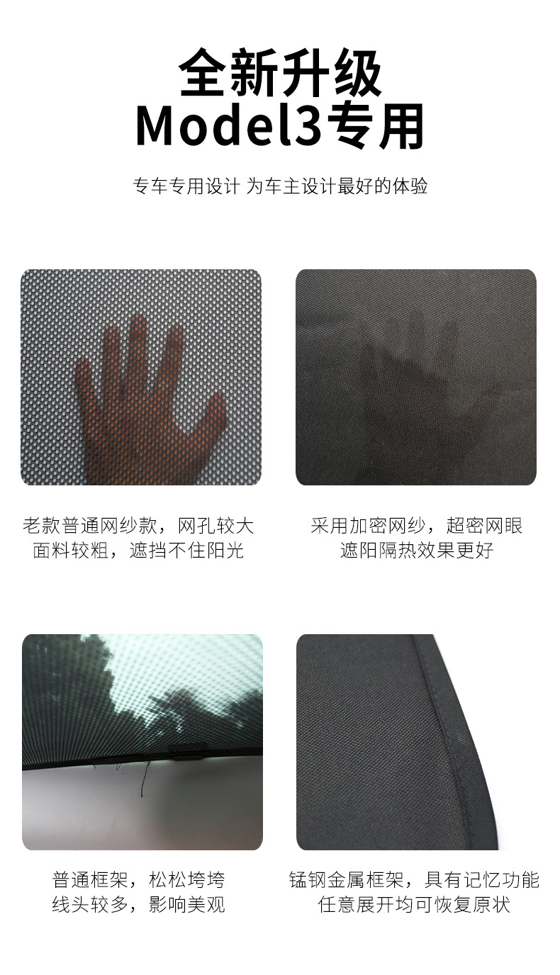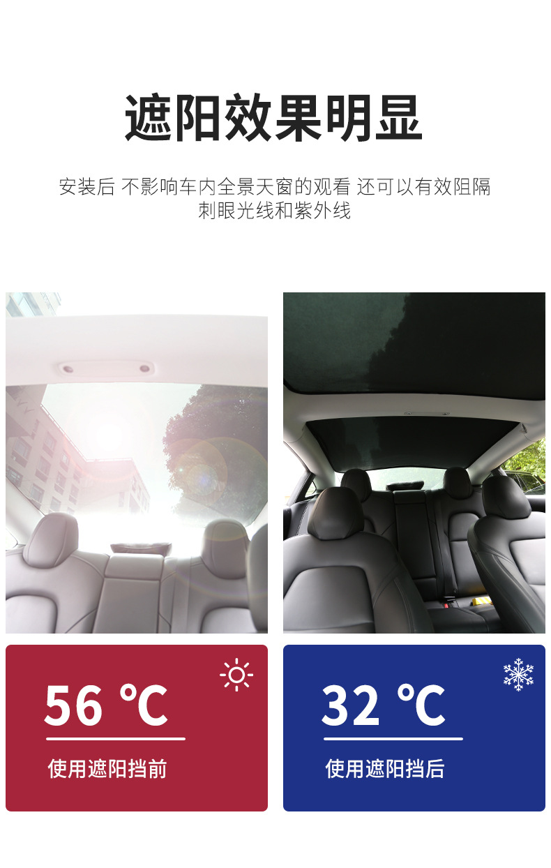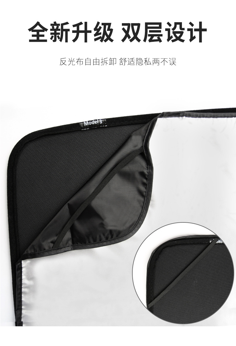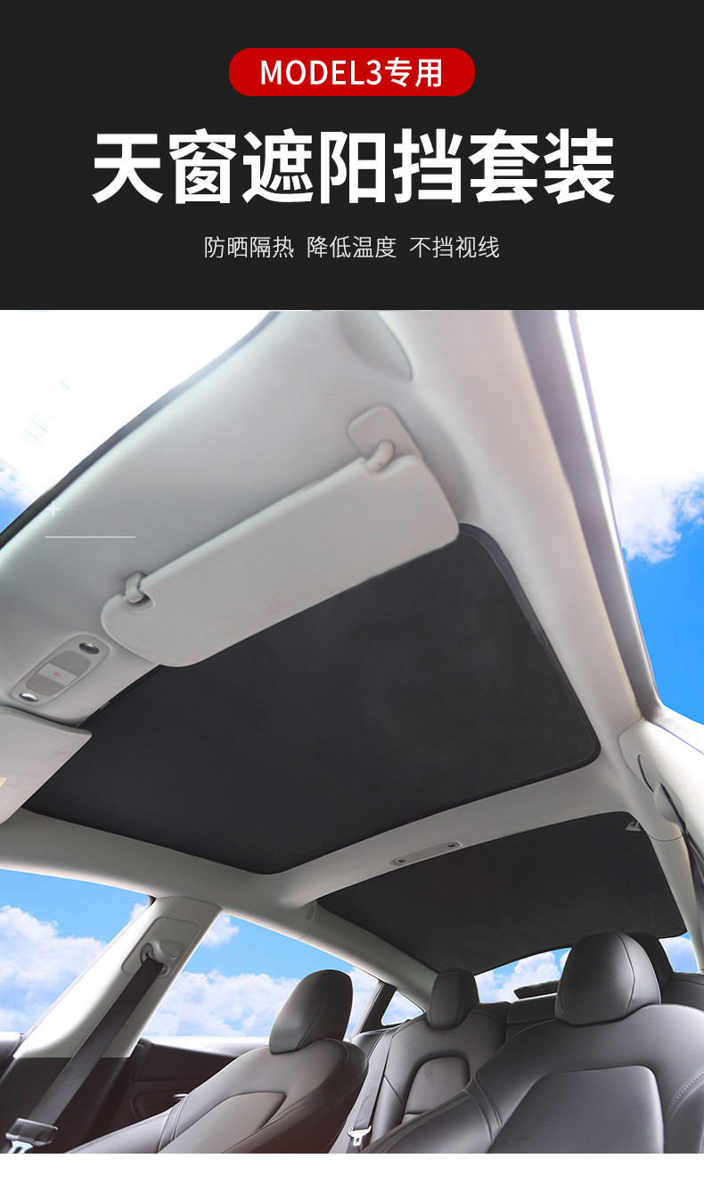 new pro upgrade model3 sunshade-front and rear skylight + quarter window two pieces (send 2 pieces of reflective cloth)