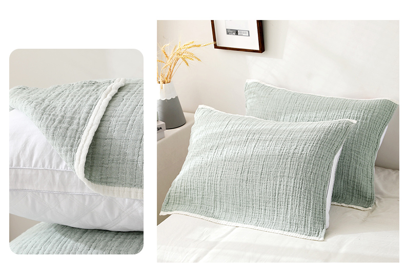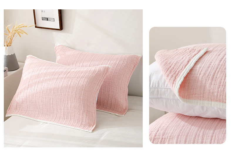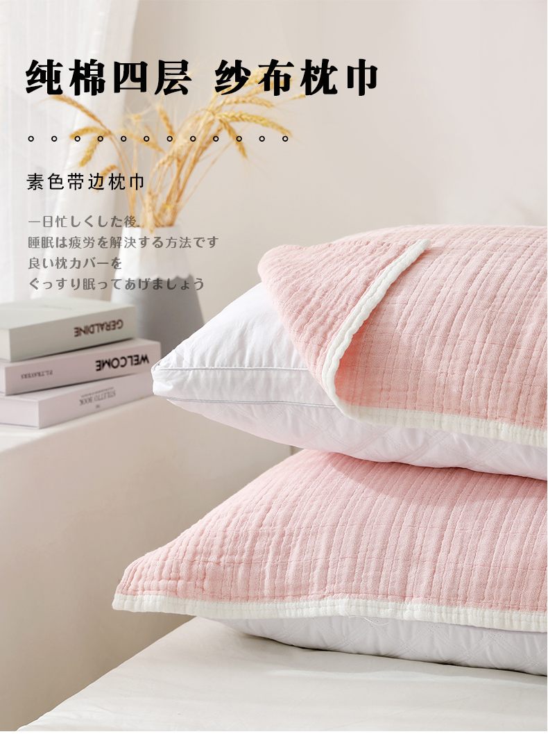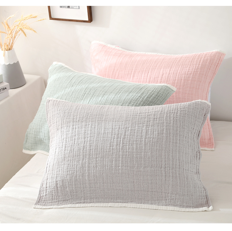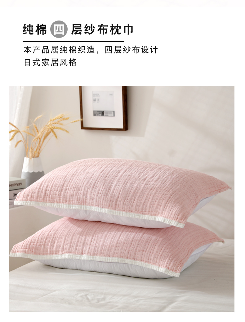 Yiwu Good Goods Pure Cotton Japanese Simple 4-Layer Gauze Pillow Cover Half Pack Pure Cotton Dormitory Students Pillow Towel One-Pair Package 中文版