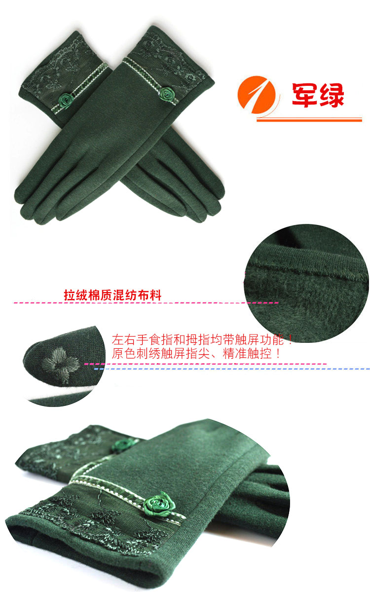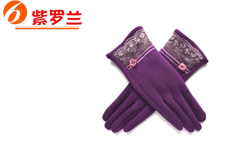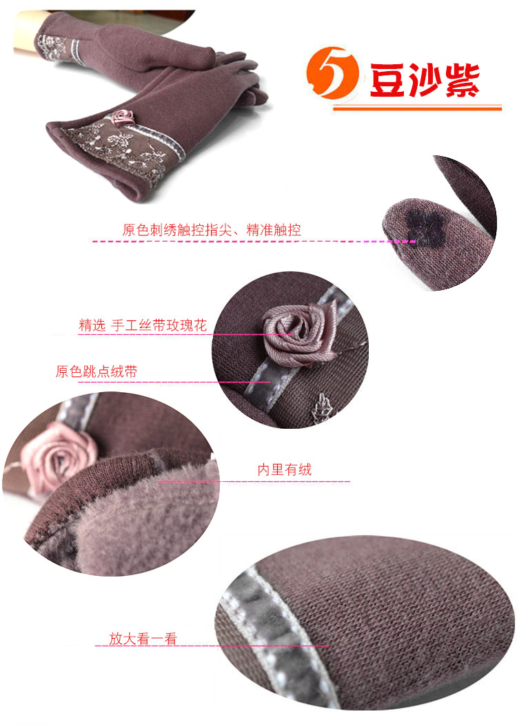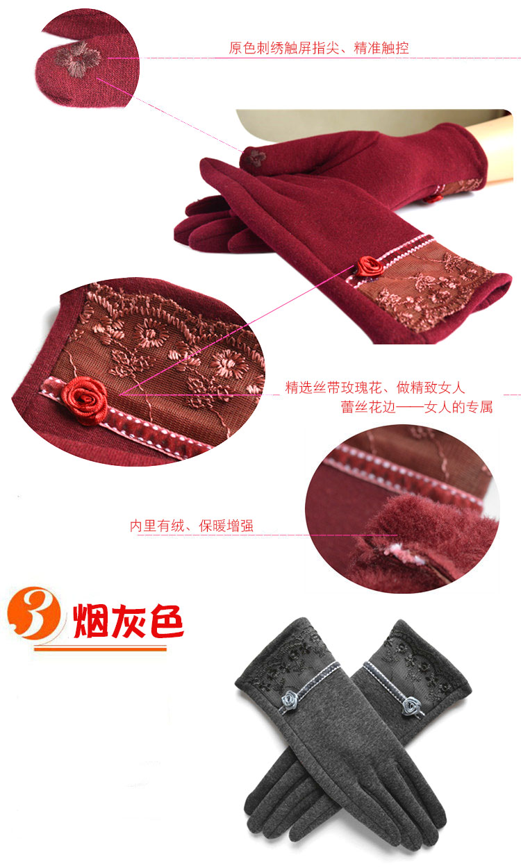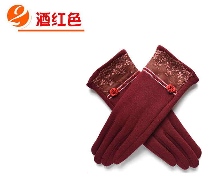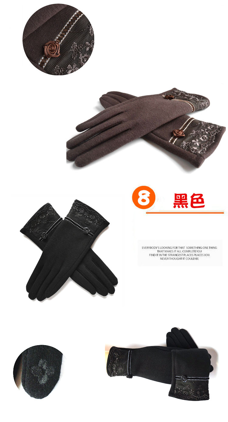 Winter Gloves Warm with Velvet Lace Women's Gloves Autumn and Winter Leisure Cycling Gloves Female Finger Driving Travel 中文版