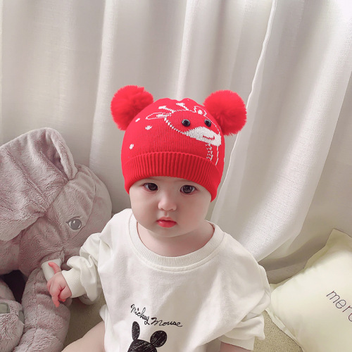 bena bear jacquard deer children's knitted wool hat gary cloth warm tire hat autumn and winter fur ball baby knitted hat