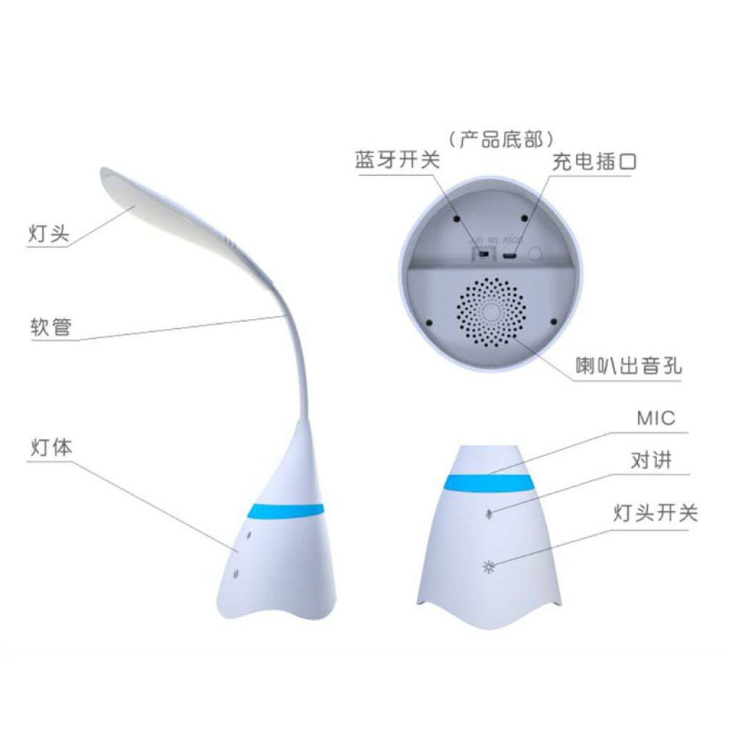 ai smart bluetooth table lamp speakers creative led eye-protection reading lamp electrodeless dimming bedside table lamp usb rechargeable light 中文版