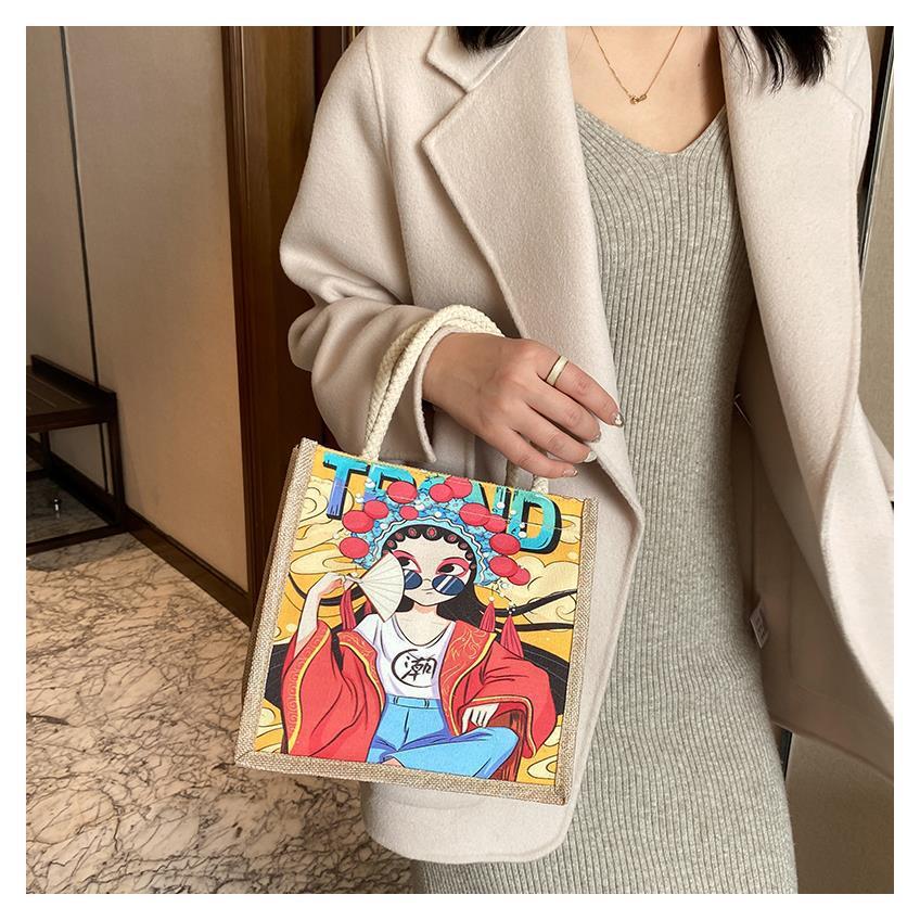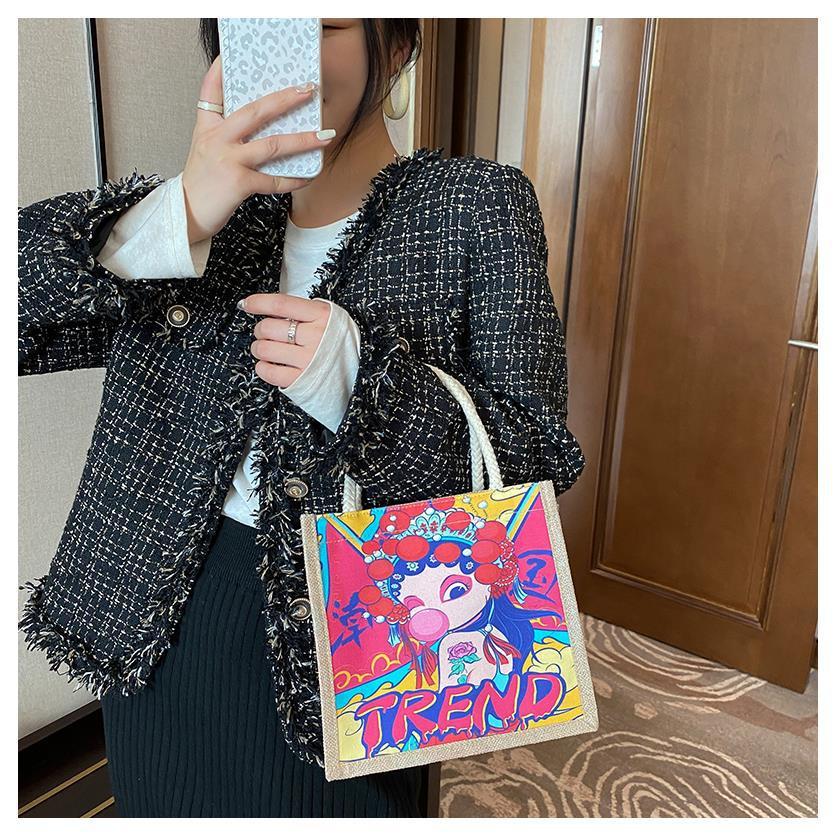 Customized New Product Trendy Ethnic Style Shoulder Bag Retro Canvas Bag Burlap Handbag Linen Cotton Cloth Shopping Bag 中文版