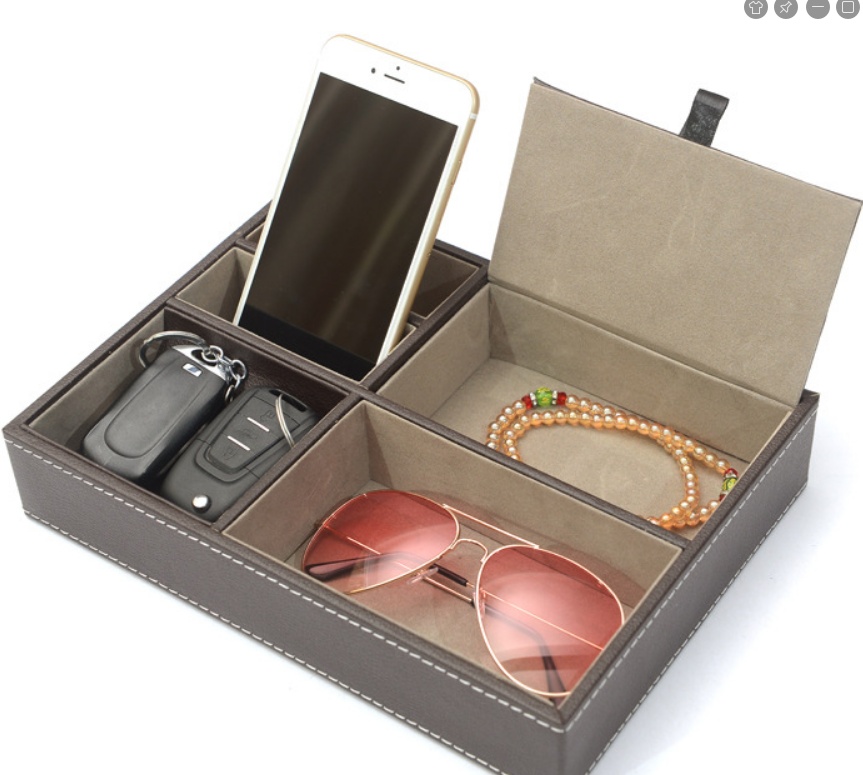 About Product:5 grid jewelry organizing box pu leather change and key watch desktop storage box