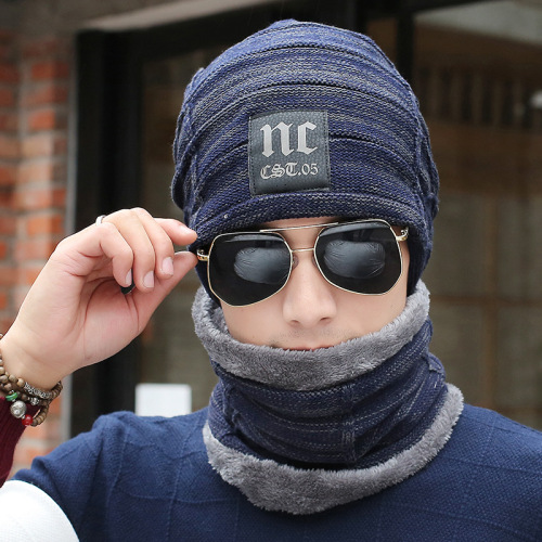 hat men's winter fleece-lined warm youth nc closed toe wool hat fleece-lined thickened knitted hat scarf set wholesale 中文版