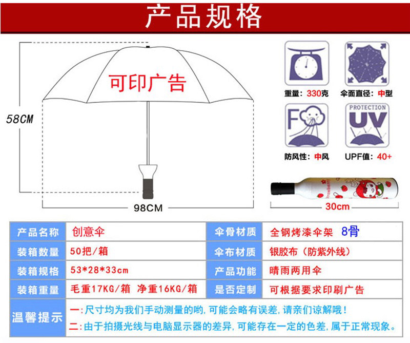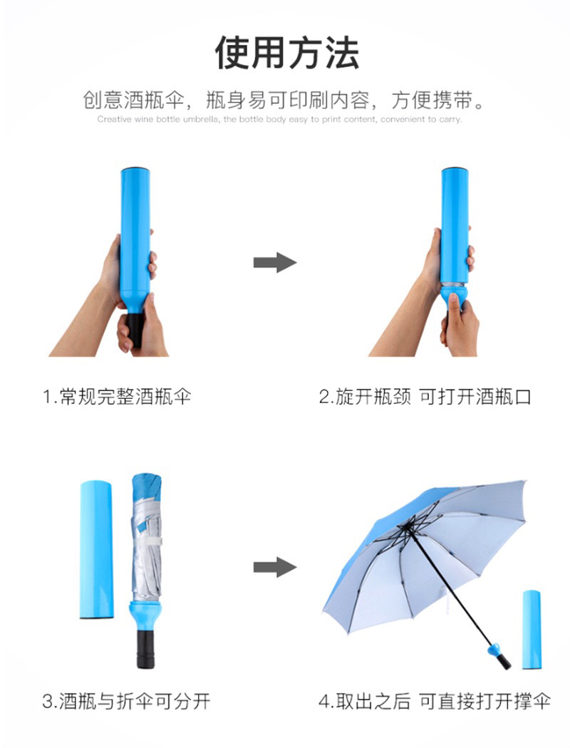 Creative Fashion Boutique Wine Bottle Folding Umbrella Sunny Umbrella Sunshade Advertising Umbrella Logo Customization