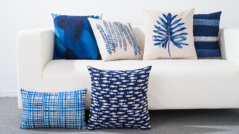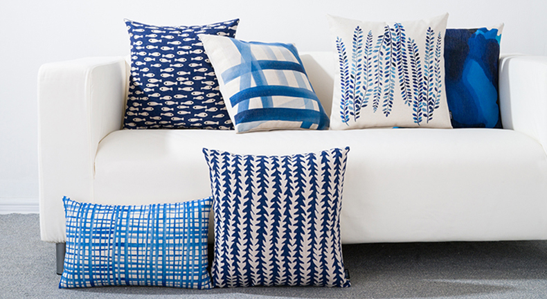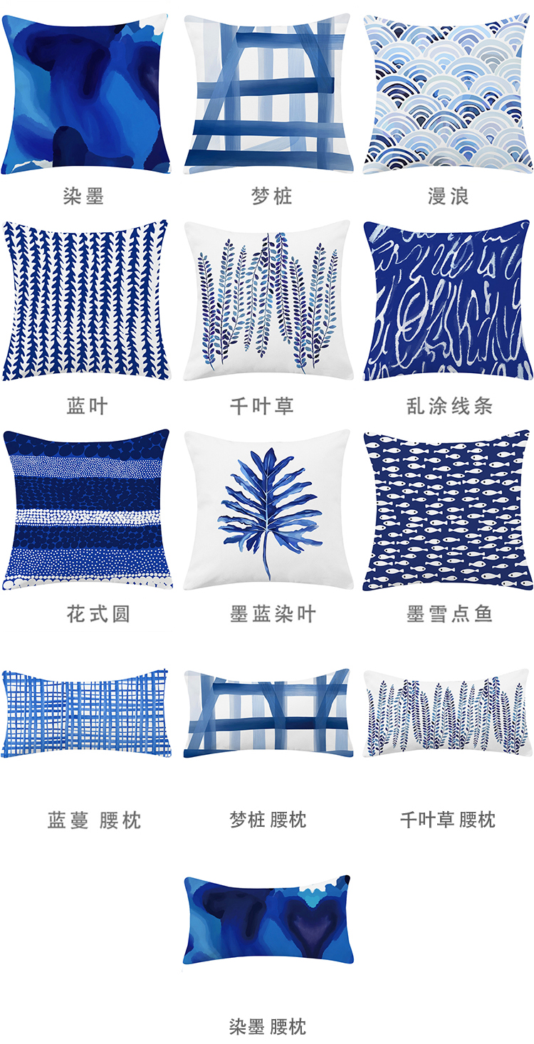 INS Canvas Pillow Mediterranean Blue Simple Bed Head Backrest Cushion Office Sofa Cushion Car Cushion Custom