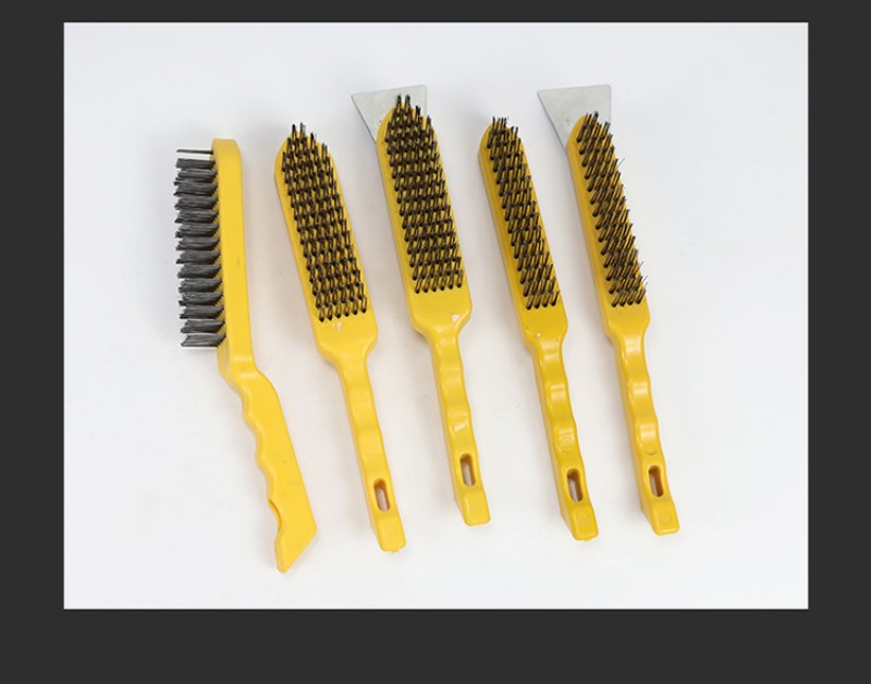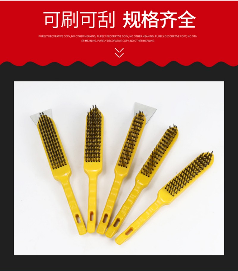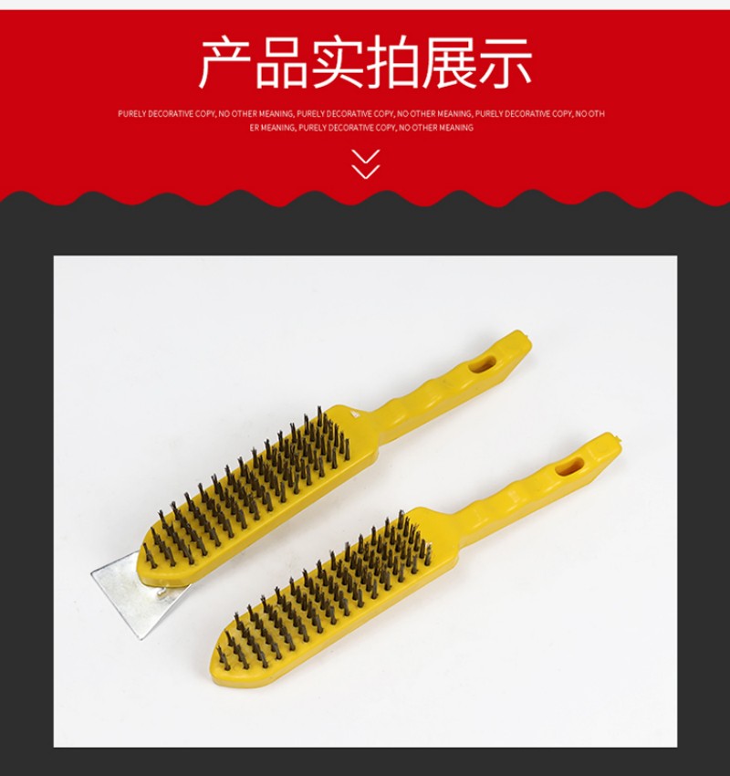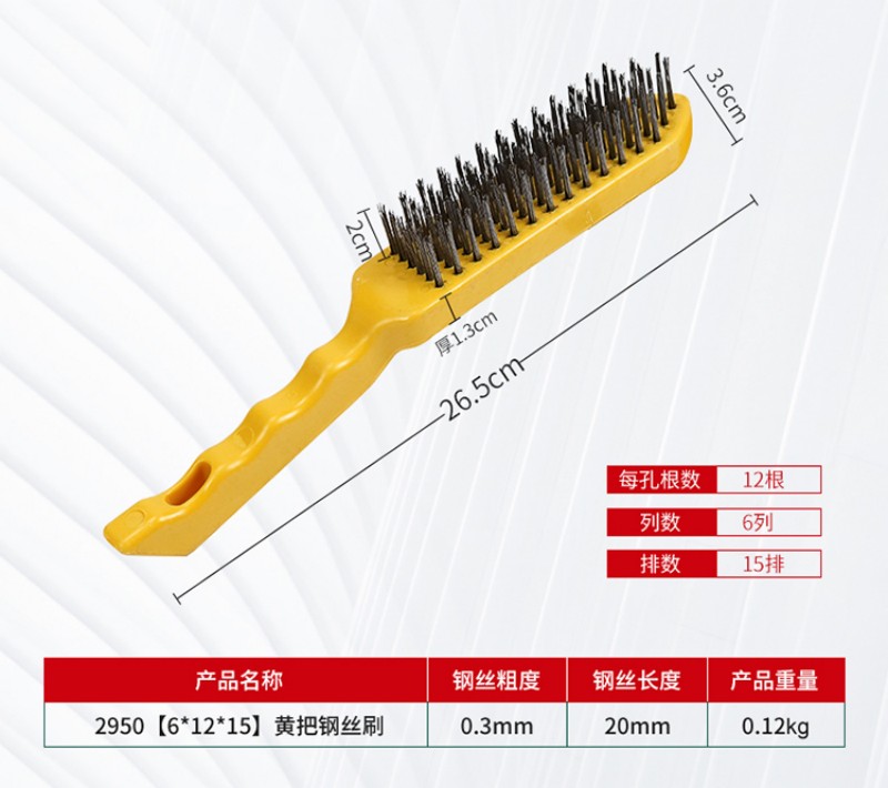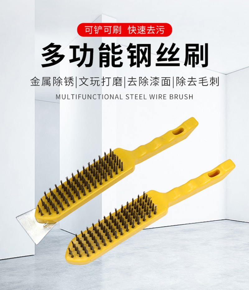 wire brush barbecue grill cleaning iron wire brush with handle industrial wire rust removal long-handled brush yellow plastic handle iron sheet 中文版