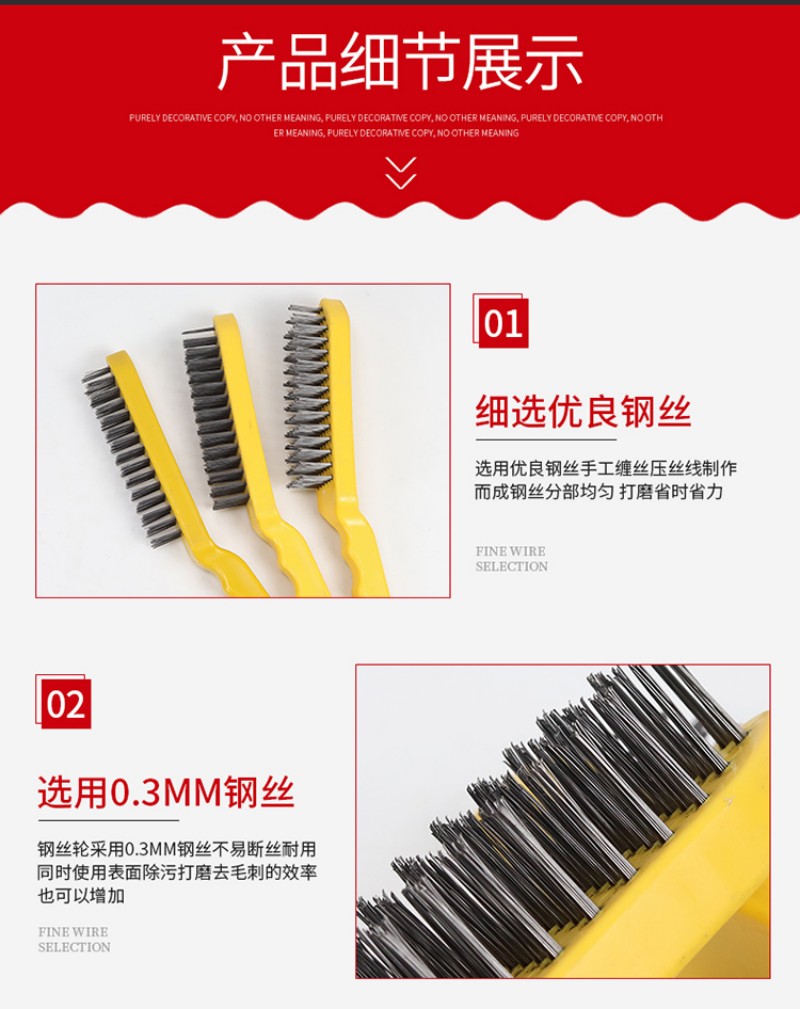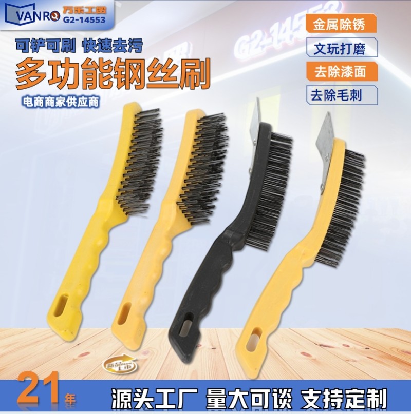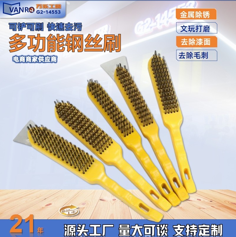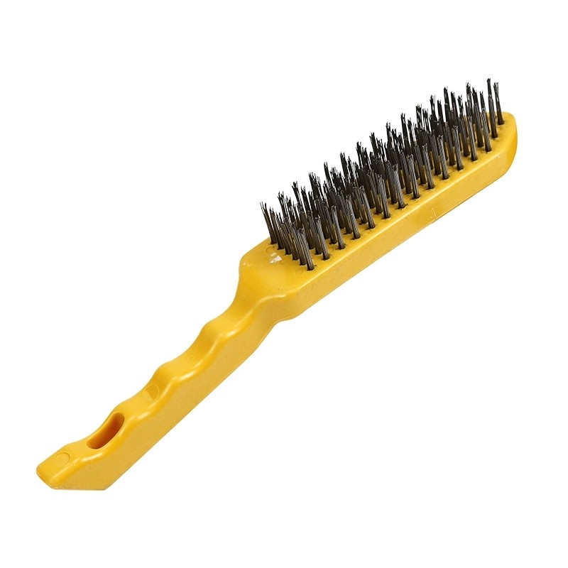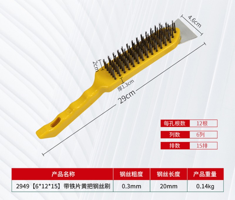 wire brush barbecue grill cleaning iron wire brush with handle industrial wire rust removal long-handled brush yellow plastic handle iron sheet 中文版