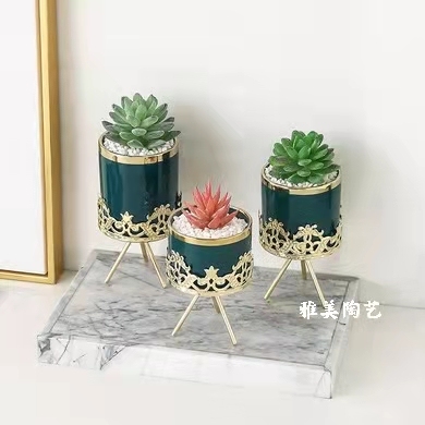 gold-plated wrought iron succulent flower pot simple nordic iron frame ceramic succulent pot hydroponic flowerpot green plant
